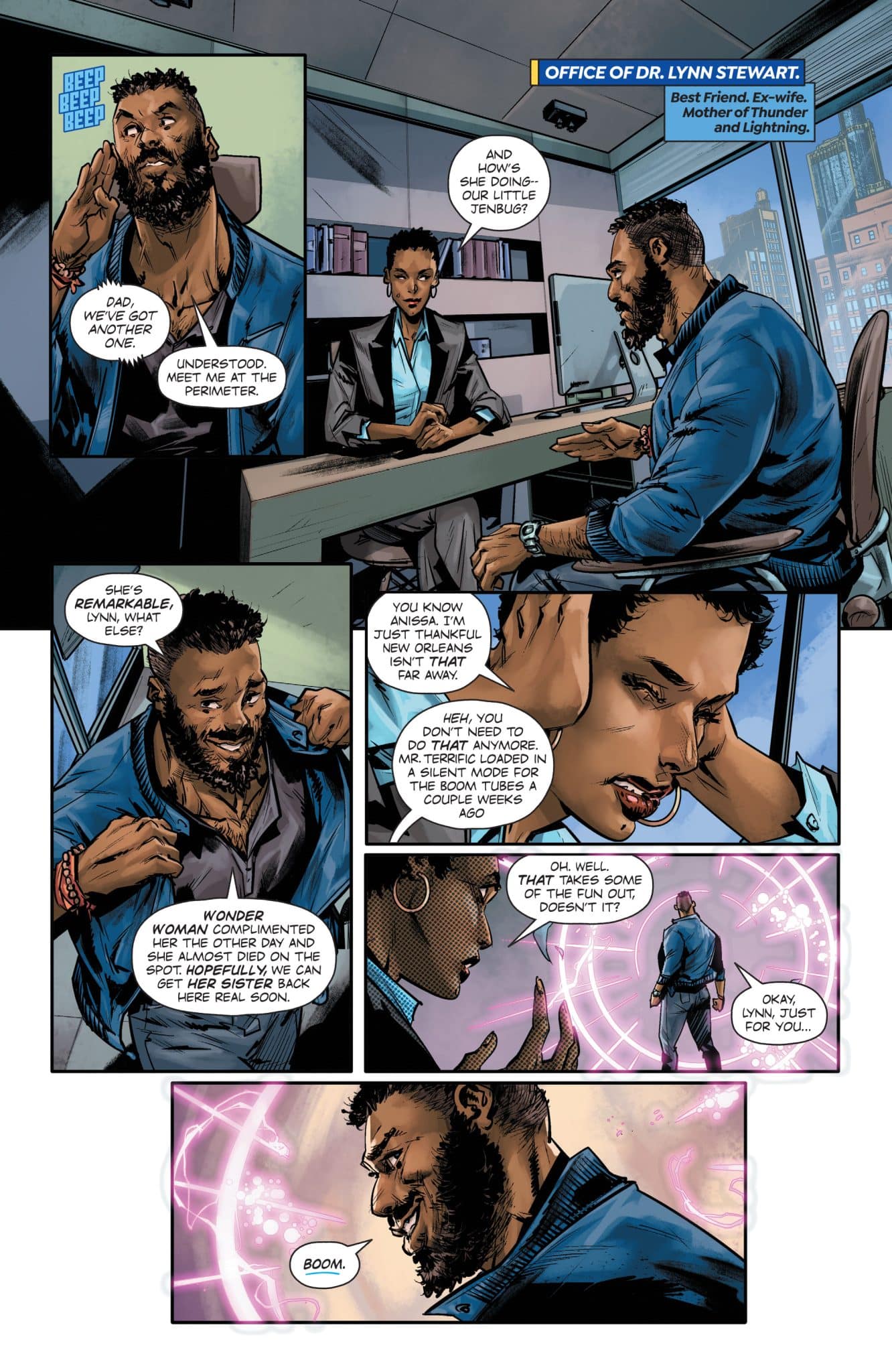 BLACK LIGHTNING IS BACK, AND THIS TIME, IT’S A FAMILY AFFAIR! Jefferson Pierce leads the Justice League’s new metahuman outreach initiative, helping those with powers before they can cause harm to themselves or others–but everything changes when its his own daughter, Anissa Pierce, who comes to him for help. With Thunder’s dangerous new powers and the new Masters of Disaster jeopardizing the coexistence between humans and Metas, Black Lightning is on the front lines of a culture war brewing in the suburbs of Metropolis!