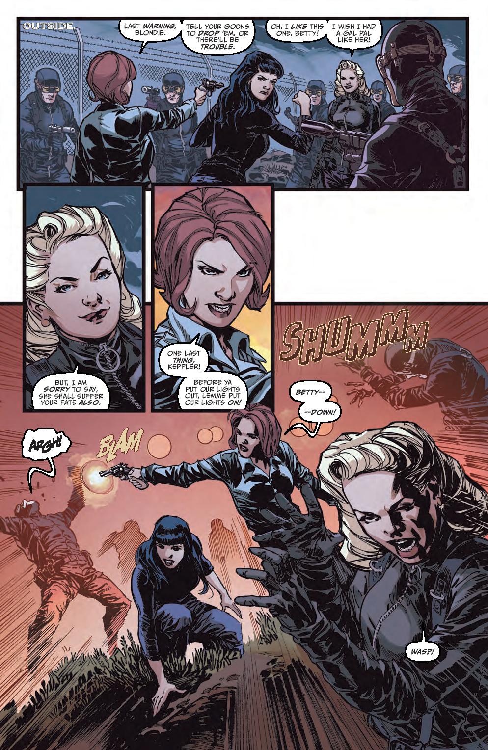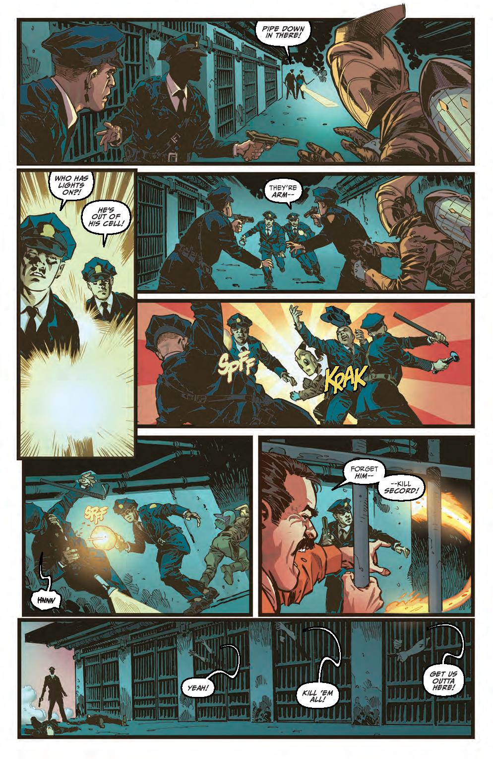 The Rocketeer has gone to Alcatraz in search of the traitor supplying the Nazis with the intel to attack America on her own soil. When he finds that the German invaders have gotten there ahead of him and are weaponizing the prisoners to stop our hero, Alcatraz turns into a battleground as all the opposing forces converge and the fate of America hangs in the balance.