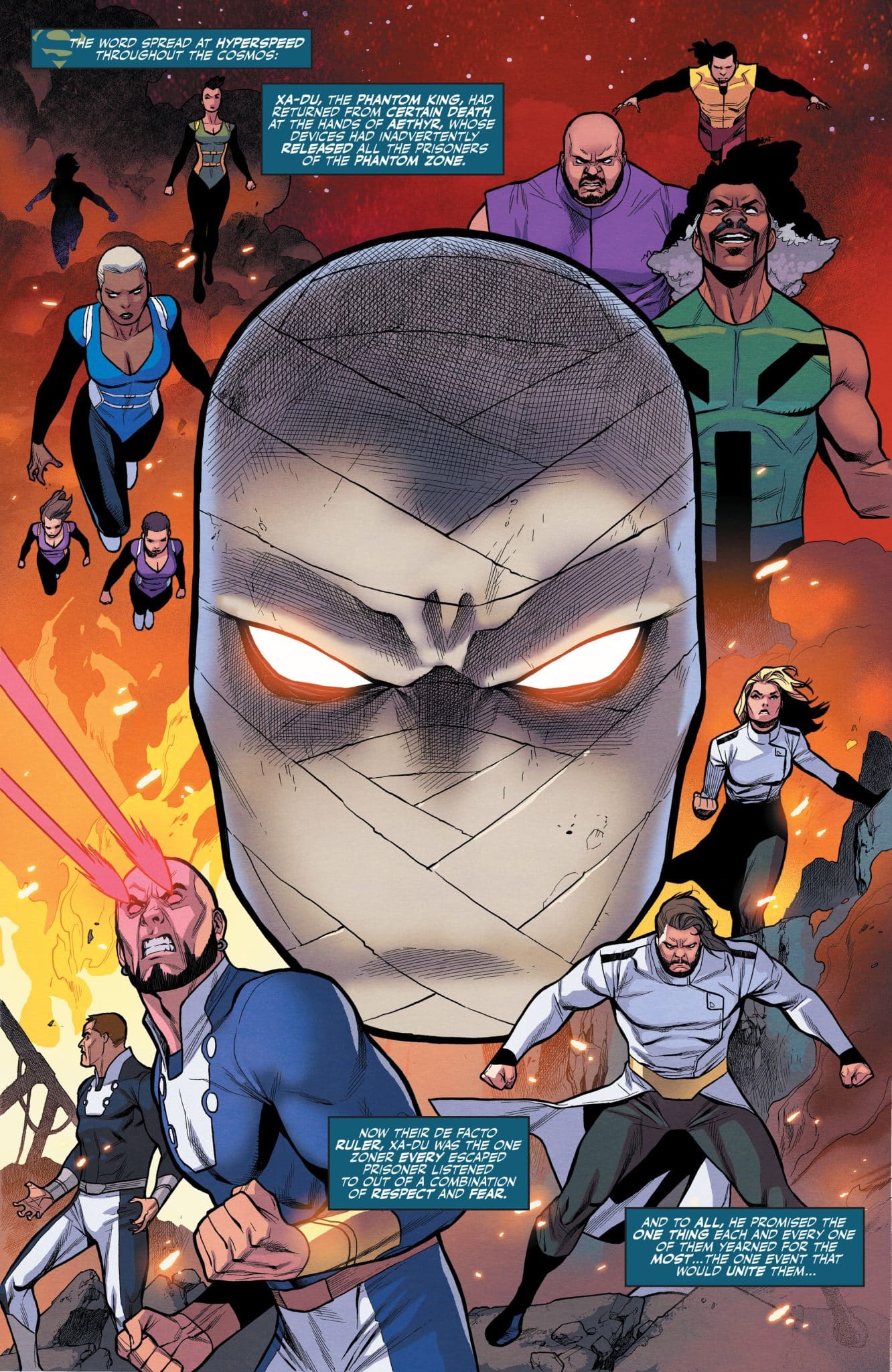 IT’S ALL LED TO THIS! As the final battle between Aethyr’s forces and the heroes of Earth reaches its climax, the Phantom Zone is changed forever…altered from the ground up and ready for new prisoners. But who of the super family will be amongst them? It’s the shocking finale to the Action Comics weekly, and you’re going to have to read it to believe it! Plus, Kara’s perilous journey home begins!