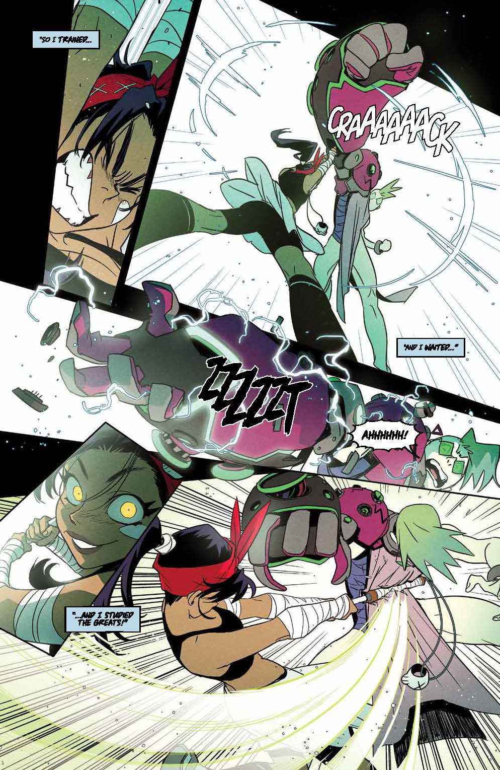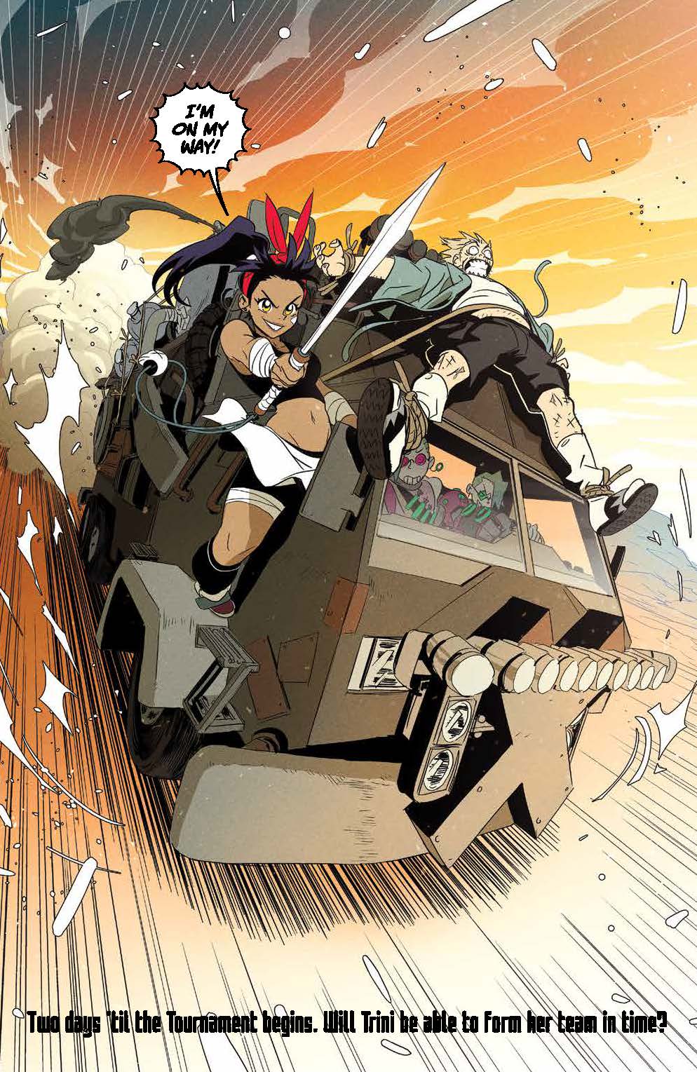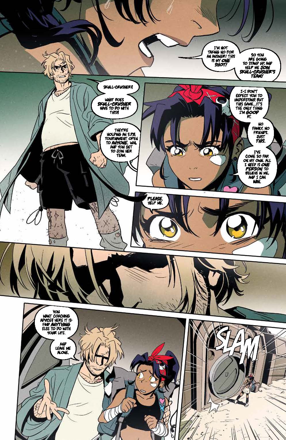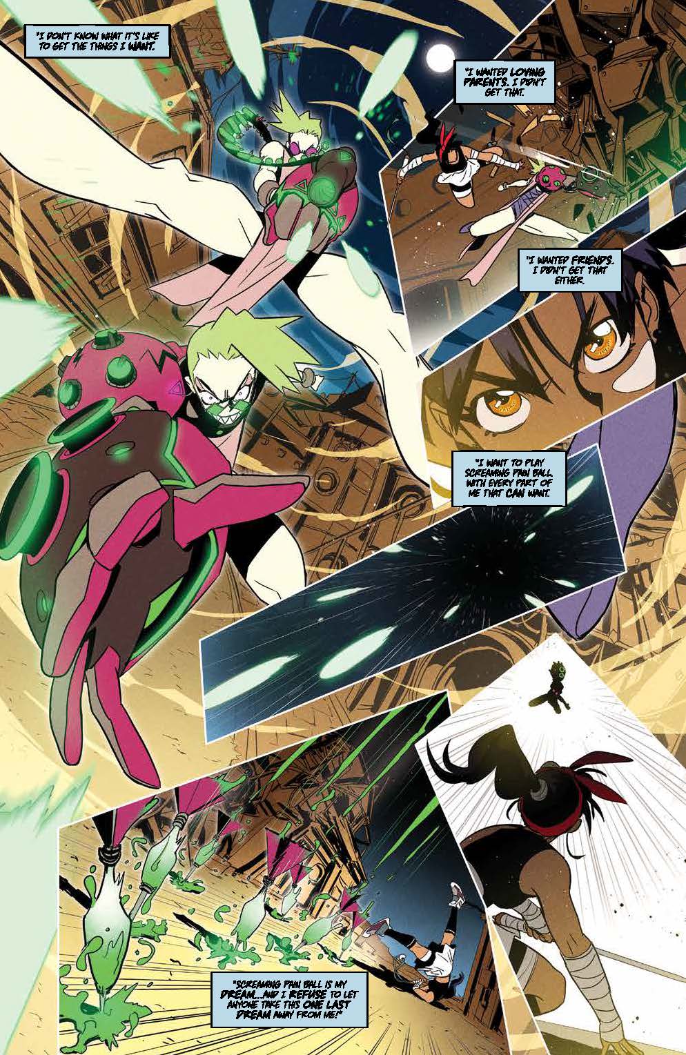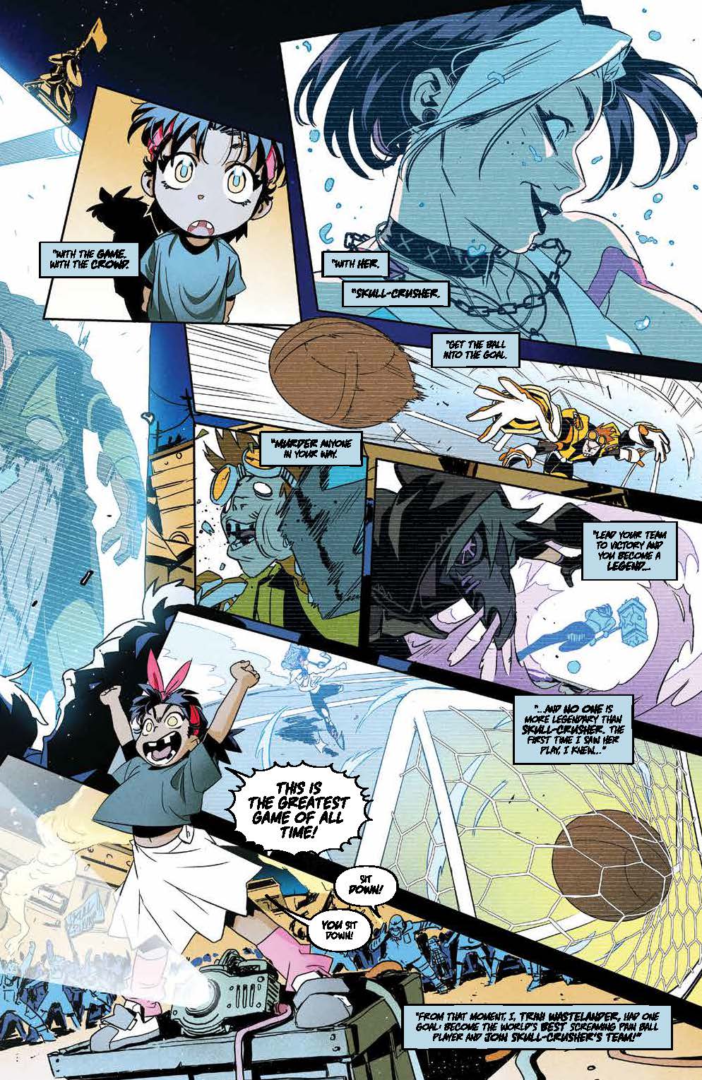 Teenage Trini will do anything to compete in her favorite sport, Screaming Pain Ball, alongside her longtime hero Skull-Crusher, and a gaggle of misfits is just what she needs to cross the American wastes and battle in Queen Mob’s deadly tournament. With Trini’s dreams of being just like Skull-Crusher on the line, what will it take to win a coveted spot on their team?