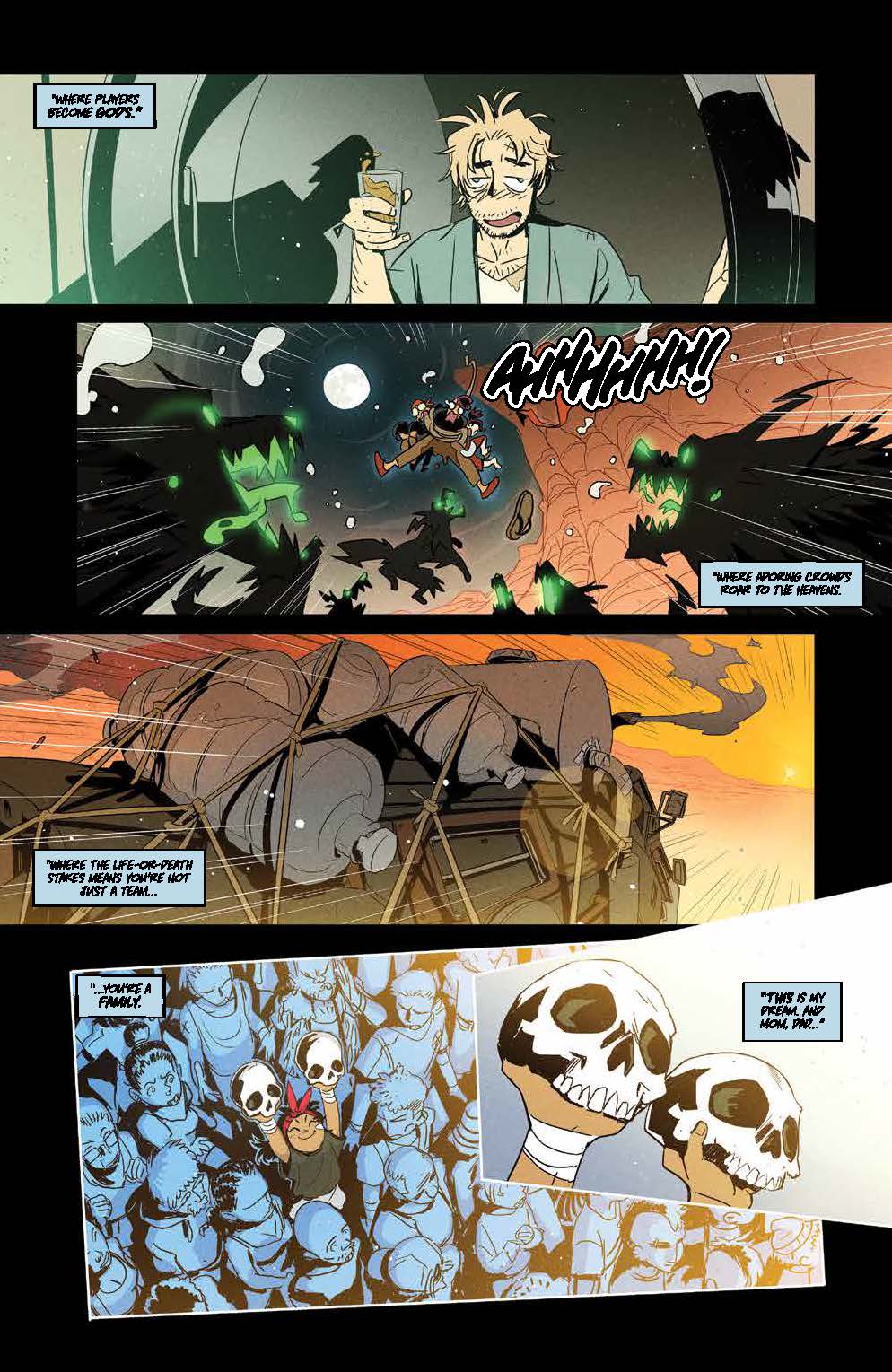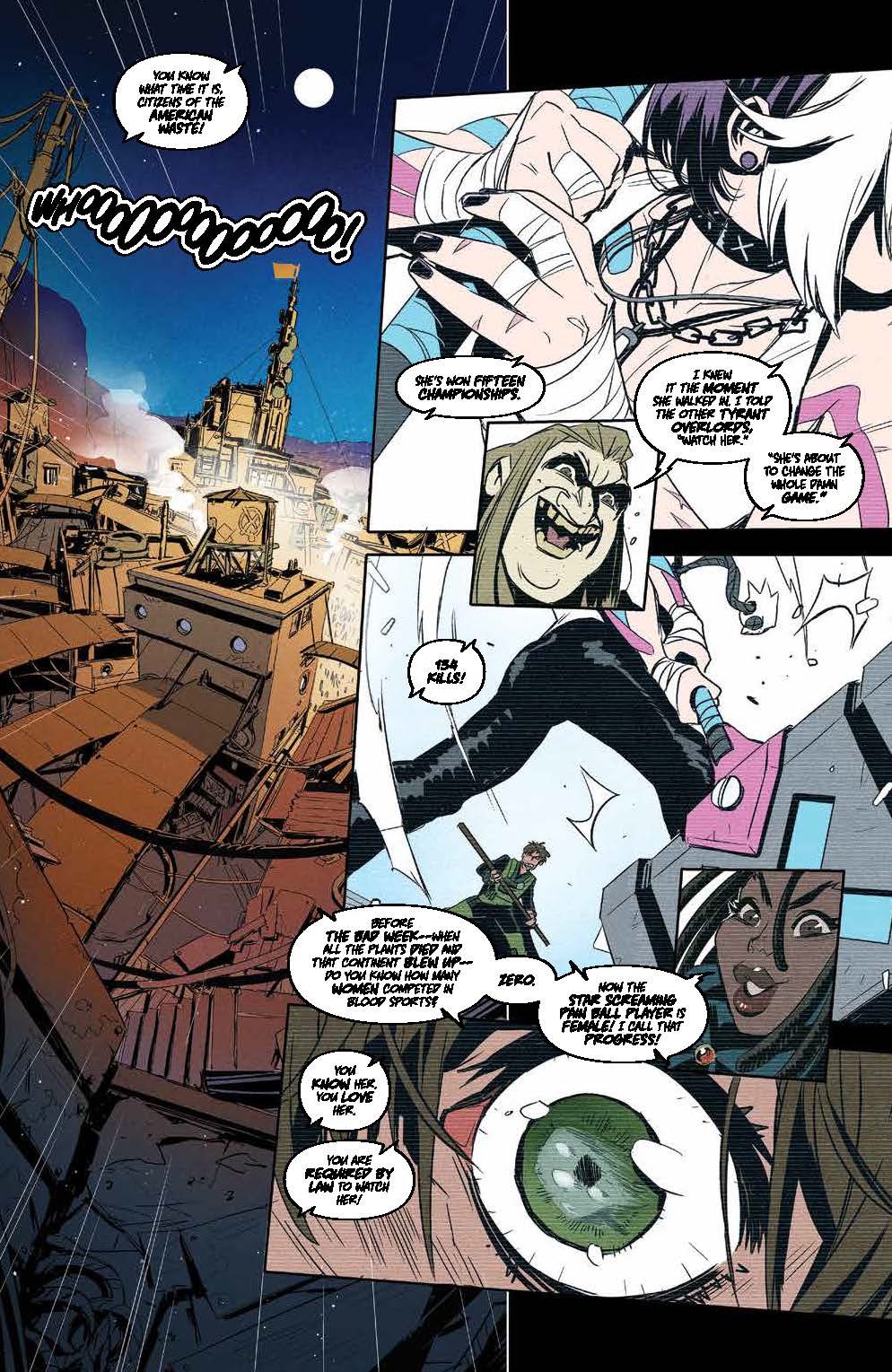 Breakout writer of DC’s Amazons Attack event and screenwriter Josie Campbell (Wonder Woman, She-Ra And The Princesses Of Power) along with rising star artist Alessio Zonno (Mighty Morphin Power Rangers/Teenage Mutant Ninja Turtles) bring sports action to post-apocalyptic America with enough comic relief at its brutal heart to keep anyone along for the ride!