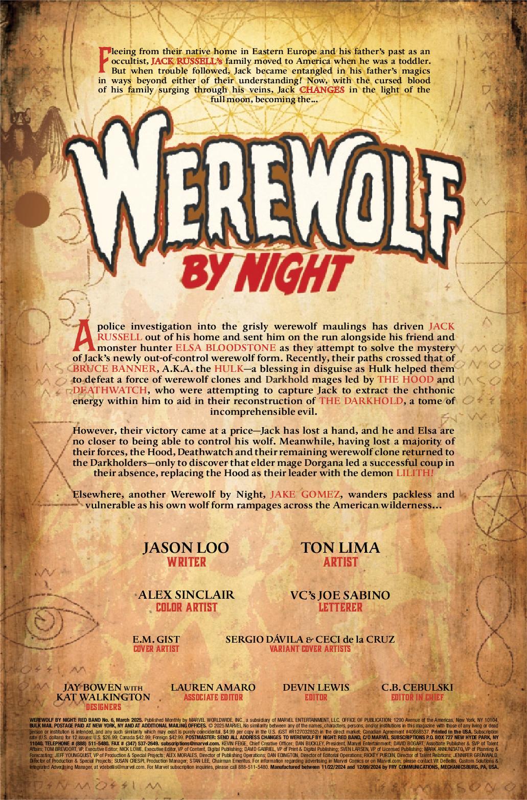 ENTER: LILITH! After her defeat during the BLOOD HUNT, Lilith has been biding her time – setting the stage for a Hellish uprising with DEATHWATCH, THE HOOD and a WEREWOLF BY NIGHT at its fore! But WHICH Werewolf by Night? And will the pelts of the rest line Lilith’s path?!