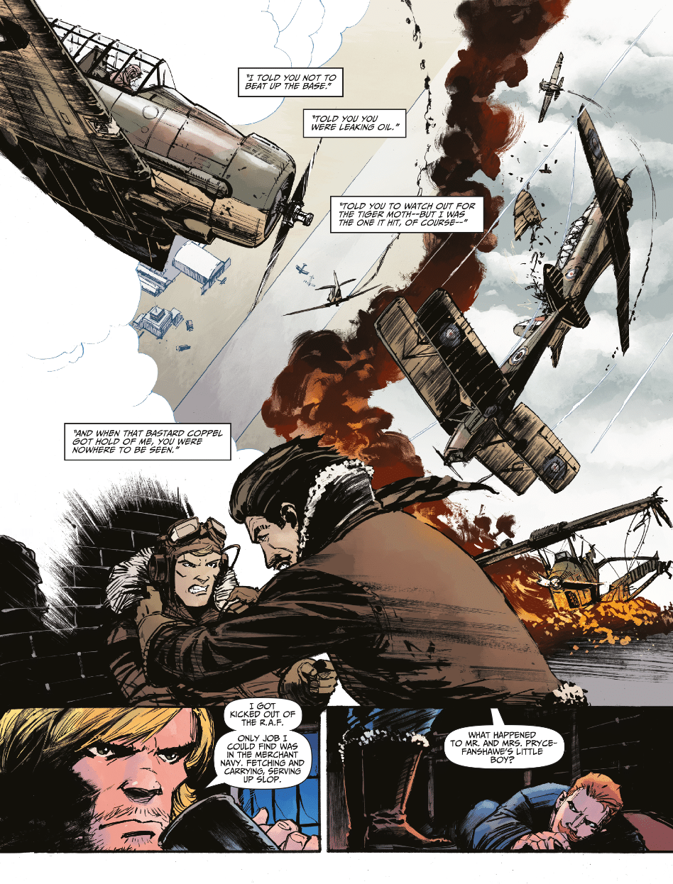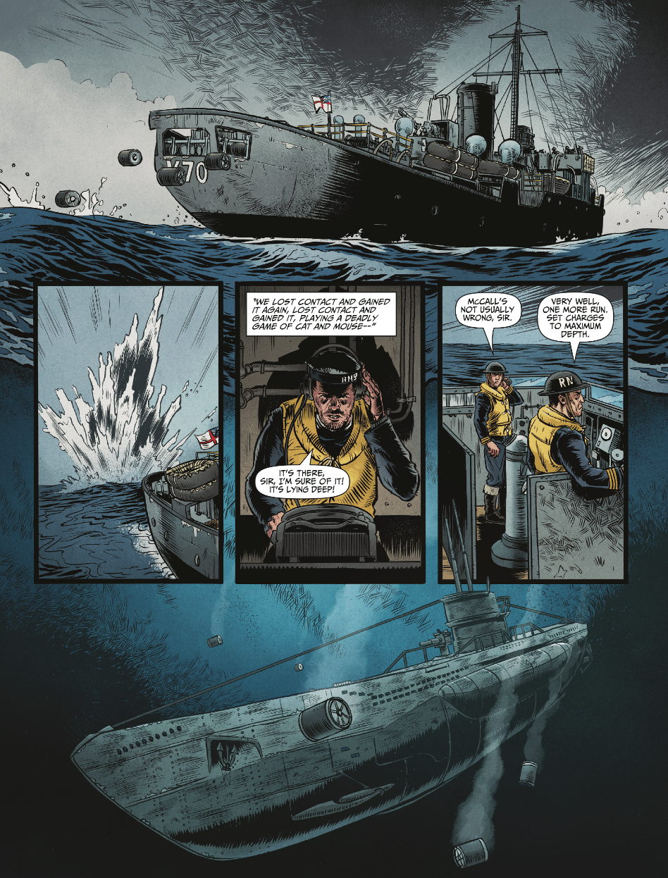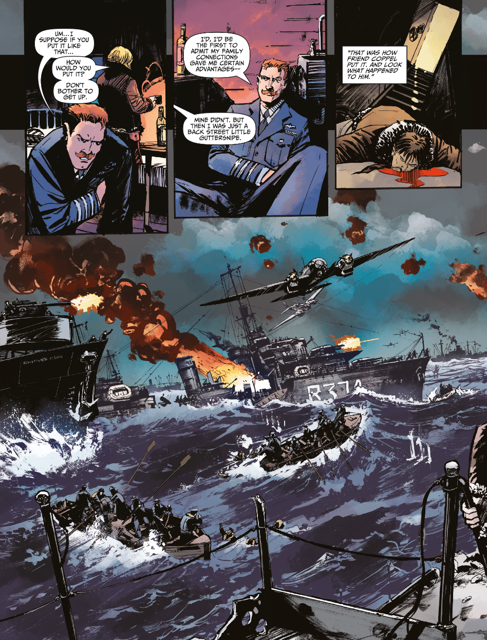 Garth Ennis and Keith Burns’ final Johnny Red story continues, as Johnny reunites with the pilot who got him kicked out of the RAF at the very beginning of his aviation career. Now a high-ranking officer, he requests Johnny’s help on a dangerous mission, and failure will irrevocably determine the war’s outcome, and foreshadow how wars are fought throughout the 20th century. This issue also features John Wagner and Dan Cornwell returning for another adventure featuring the crew of the HMS Nightshade, as Nightshade must protect a convoy from overwhelming Axis forces, but at what cost to themselves?