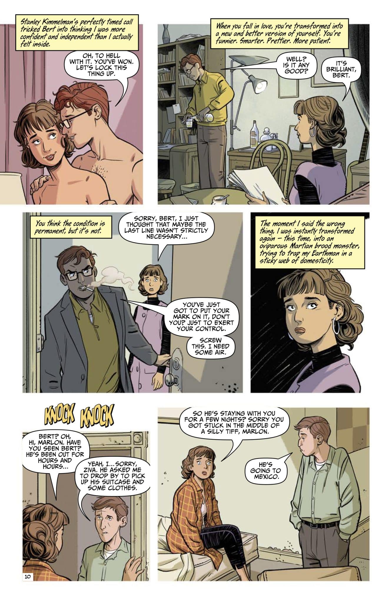 Aliens are the last thing on 23-year-old beatnik and proto-feminist Ziva Rodblatt’s mind — she’s too busy trying to keep her mother from discovering that she is living out of wedlock with her boyfriend. But when said boyfriend falls under the sway of celebrity therapist Myrtle Morel, she begins to grow suspicious. Why is Bert sneaking out before dawn to meet with strangers? Why does he have a sudden taste for cream of mushroom soup? And Ziva is not the only one who believes that she is living with someone who looks familiar, but is unmistakably and disturbingly different. All of a sudden, there seem to be a lot of writers, artists and musicians falling under Myrtle’s spell. But what can one feisty college-drop-out do to fend off the alien invasion?