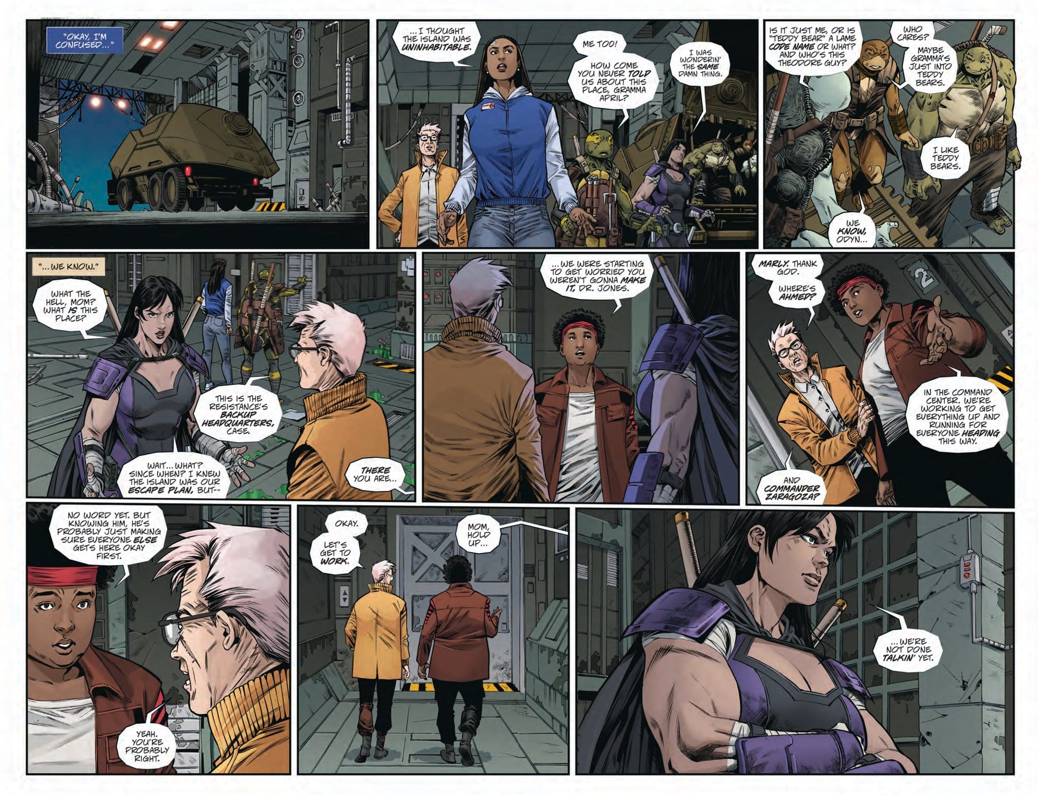The criminal underworld’s takeover of New York City is ongoing, and the violence is escalating as the city is overwhelmed by gang warfare in the streets. When coordinated attacks threaten to fully destroy the Resistance, April executes an untested contingency plan, and her allies and enemies alike must flee to safety. With the city so dangerous, though, there’s few places of sanctuary left. As Resistance survivors retreat to an old stronghold, the new Teenage Mutant Ninja Turtles must reconcile the past with the present in the penultimate issue of the Re-Evolution story!
