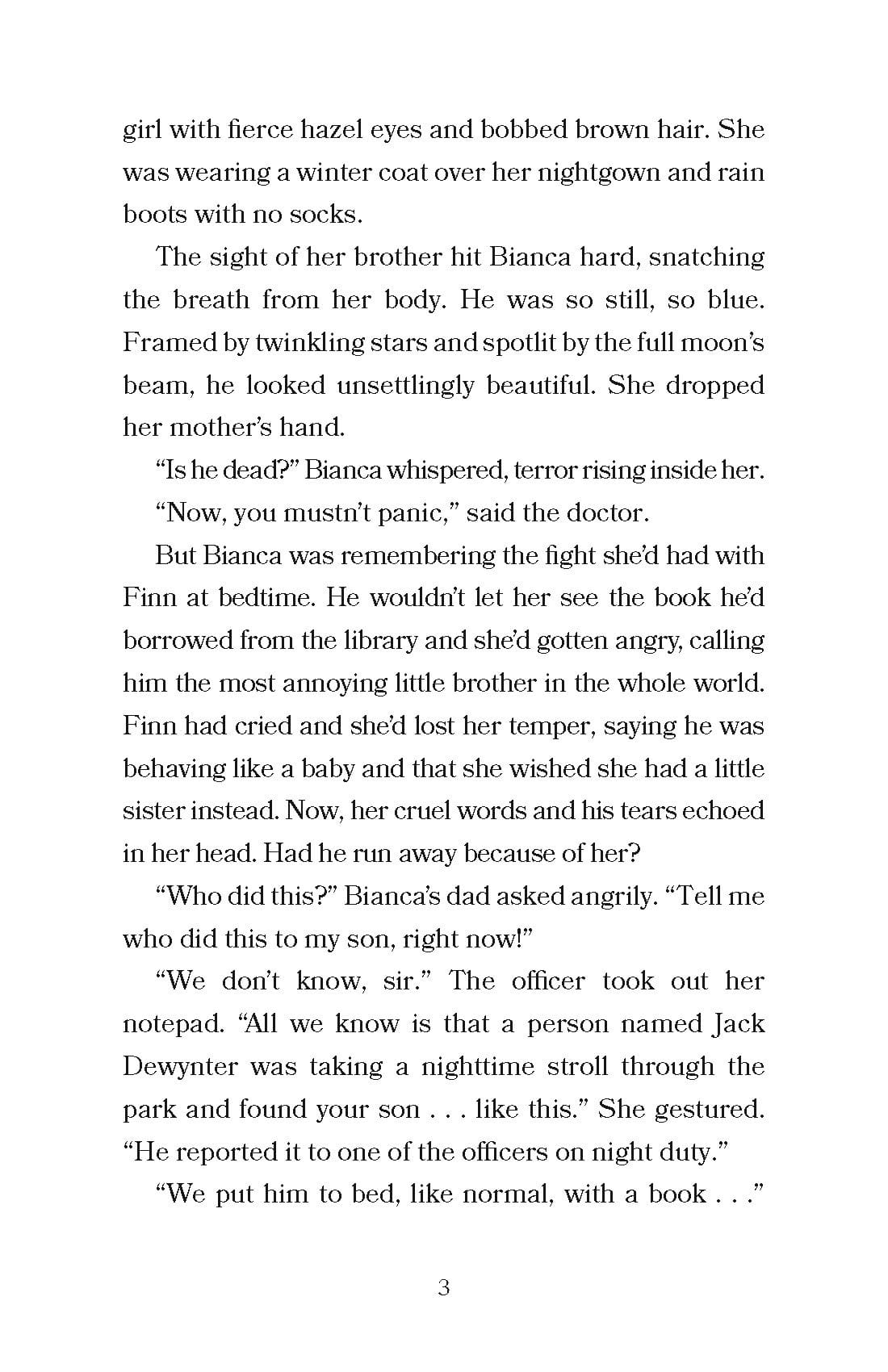 Finn’s big sister, Bianca, suspects that the beautiful sparkling book Finn got from the library has something to do with it, but the book has vanished. Does the tall mysterious stranger who first discovered Finn know more than they will admit?