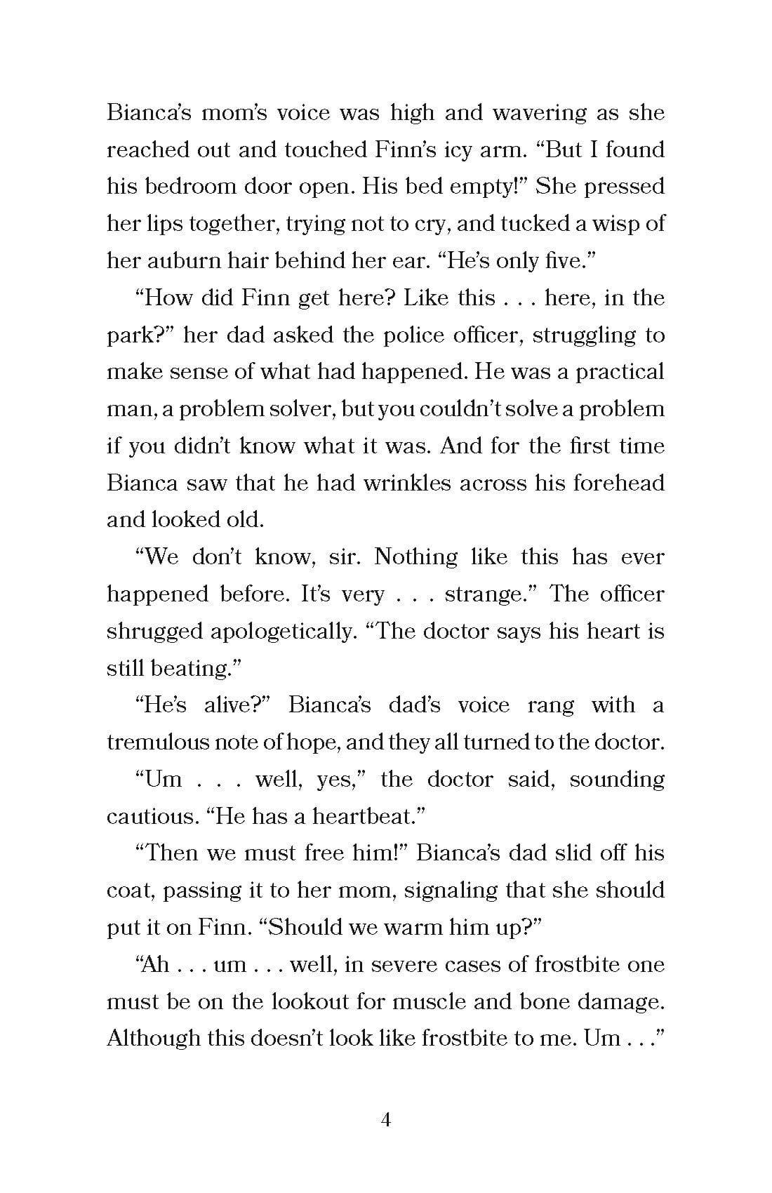 At the stroke of midnight on the dawn of December, five-year-old Finn Albedo is found frozen in the city park standing on a pedestal of ice. His heart is beating, he is smiling serenely, but no one can wake him.