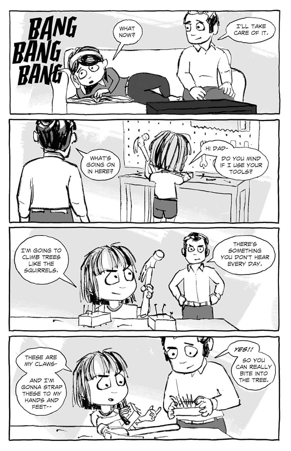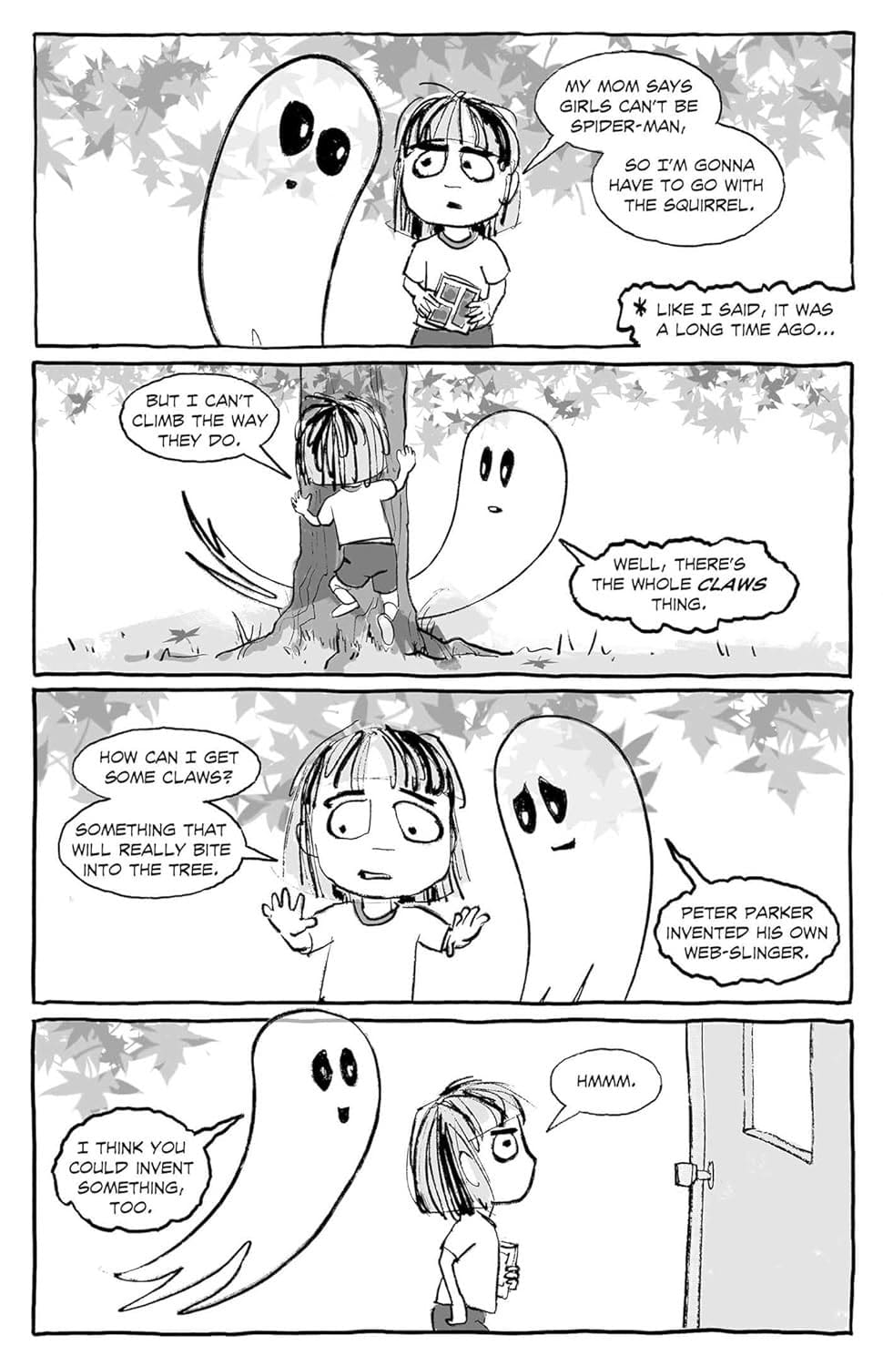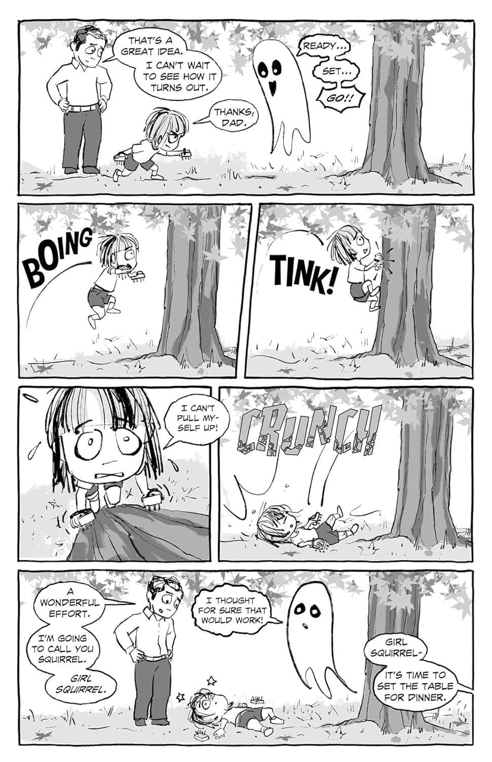 Divided into brief, self-contained stories connected by themes about sibling rivalry, empathy, and bullying, Gracie’s Ghost is a sweet and emotional book, reminiscent of Calvin & Hobbes, The Girl and the Glim, and Sheets.