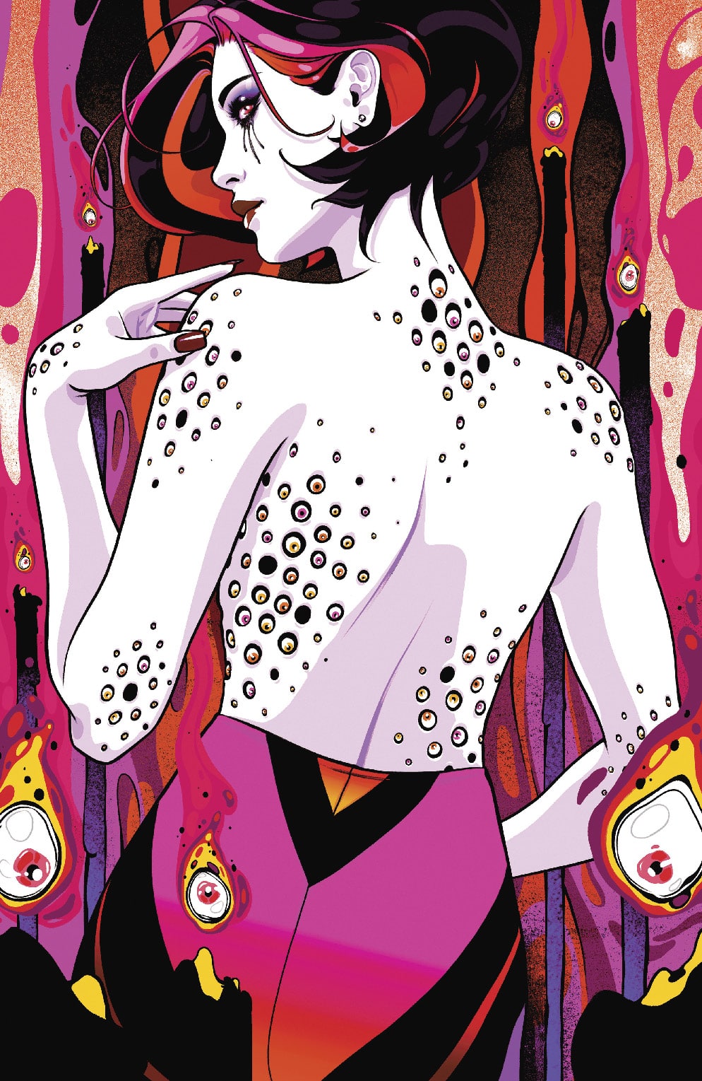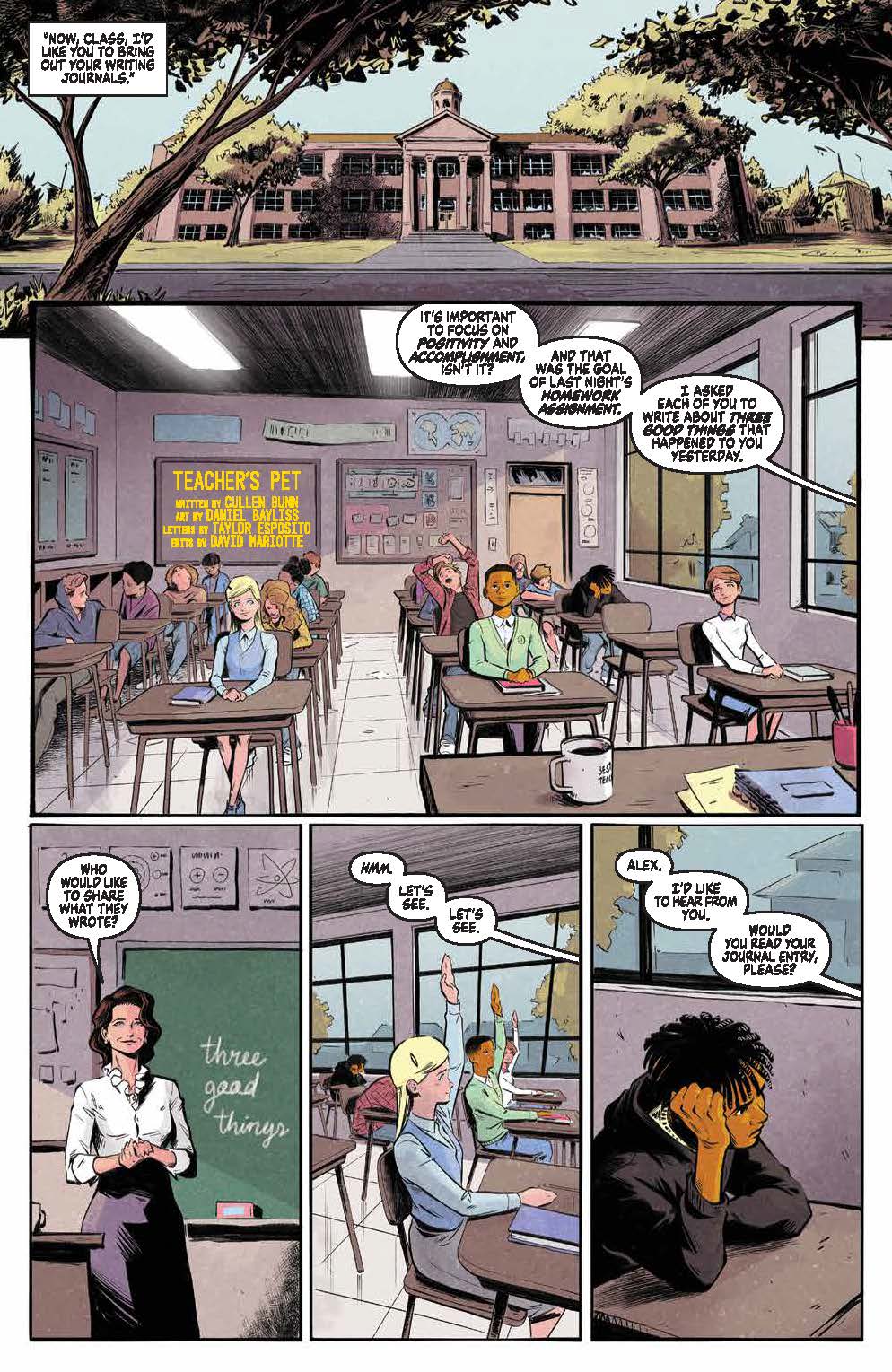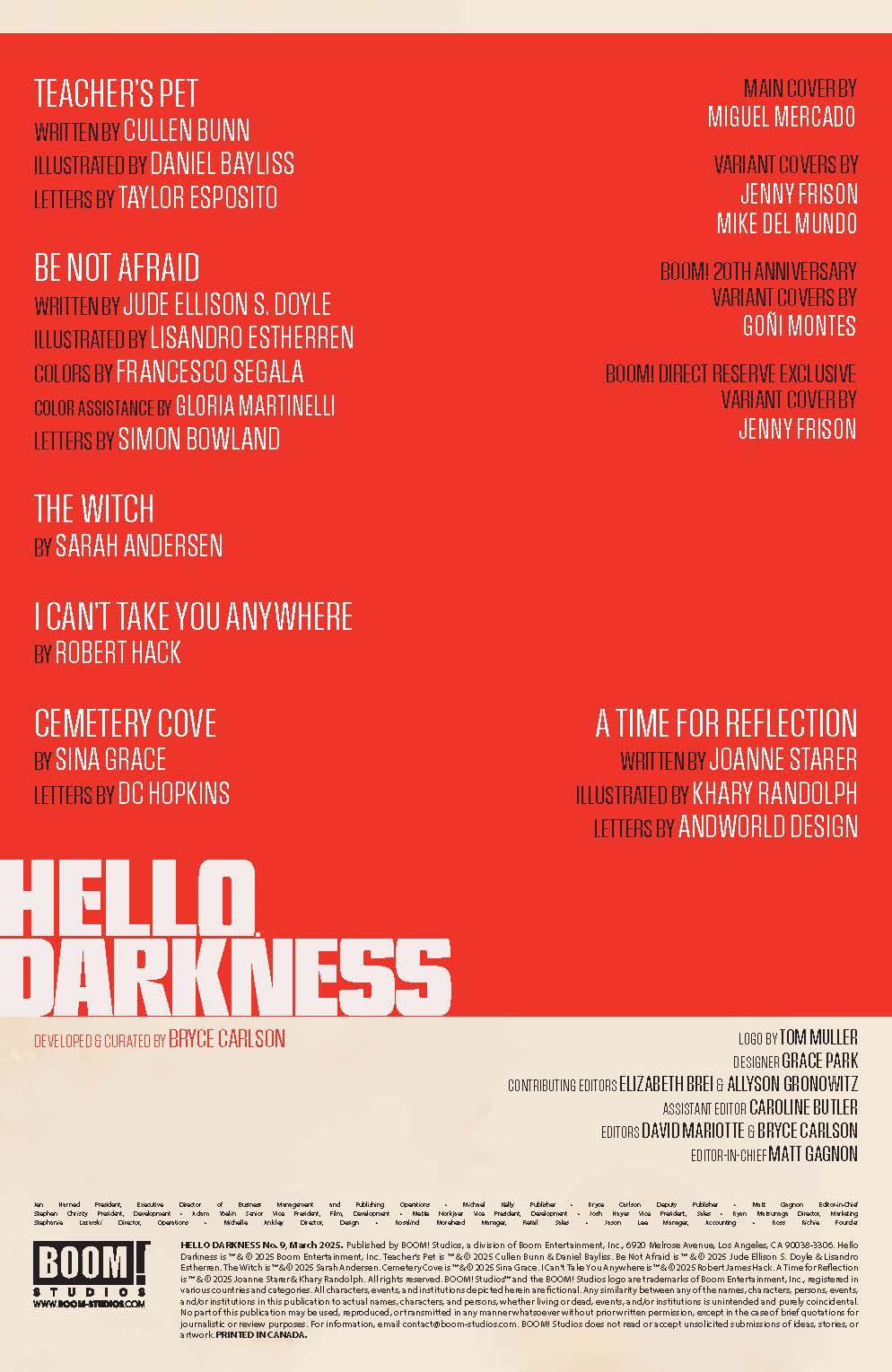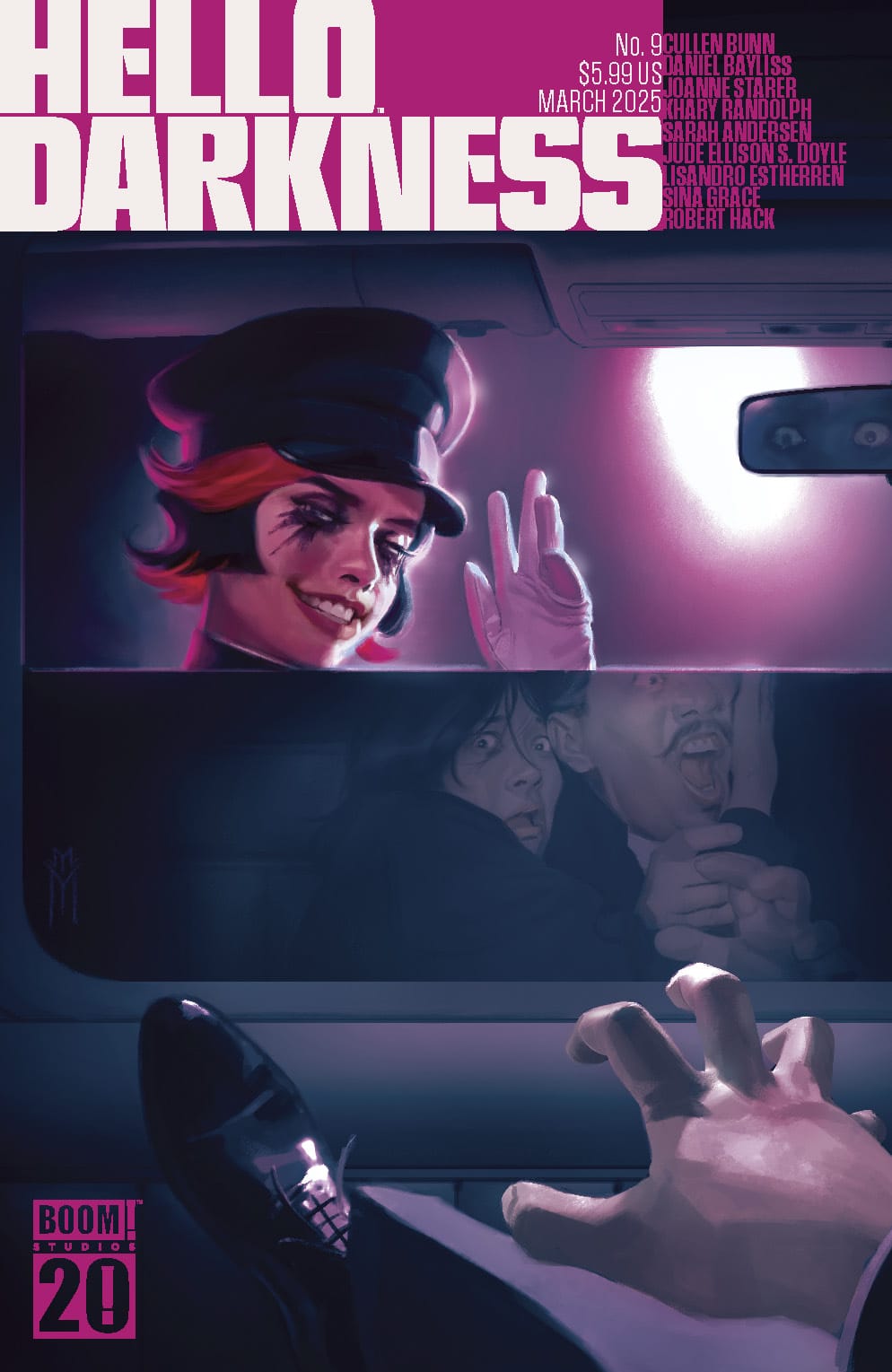 Prepare for a monstrous new method of disciplining misbehaving students in “Teacher’s Pet” by Cullen Bunn and Daniel Bayliss! Don’t change that channel as a superfan finds himself on his favorite cult TV show where the dangers are real in “Cemetery Cove” by Sina Grace! Be sure to respect the dead as you’re invited to join a special shiva in Joanne Starer and Khary Randolph’s “A Time for Reflection” Plus it’s a madcap March in Robert Hack’s I Can’t Take You Anywhere and even more stories in the newest installment of the genre-defining horror anthology series!