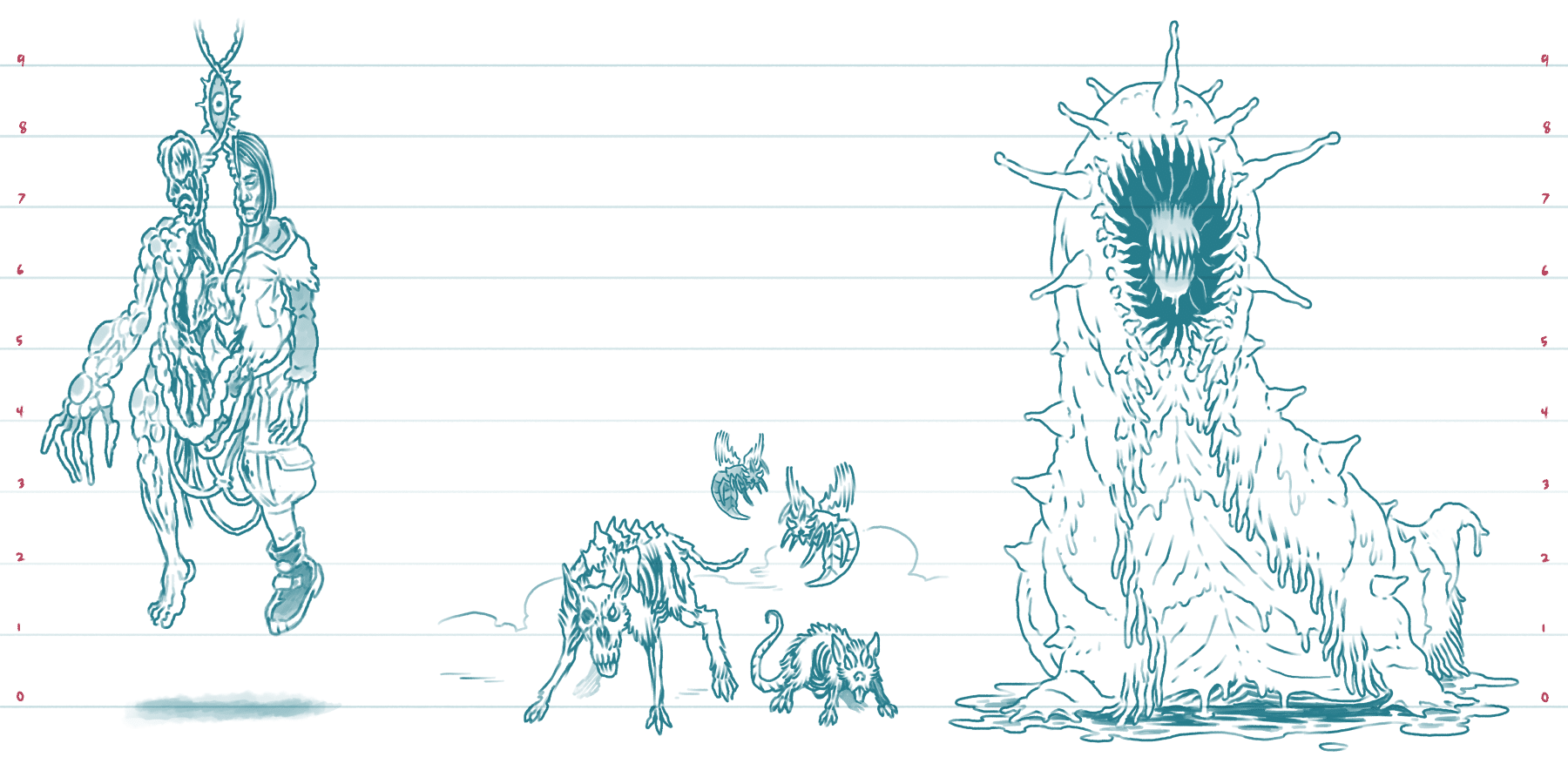 Daniel really said it all. He’s told stories for every character with his designs in game and in reality where you can infer so much just by looking at them. I adore the monster designs this time out. The Blighted Sprawl is home to all kinds of twisted souls and strange hybrid-animals that tow this uncanny line between dream and reality. I find that liminal space really terrifying.