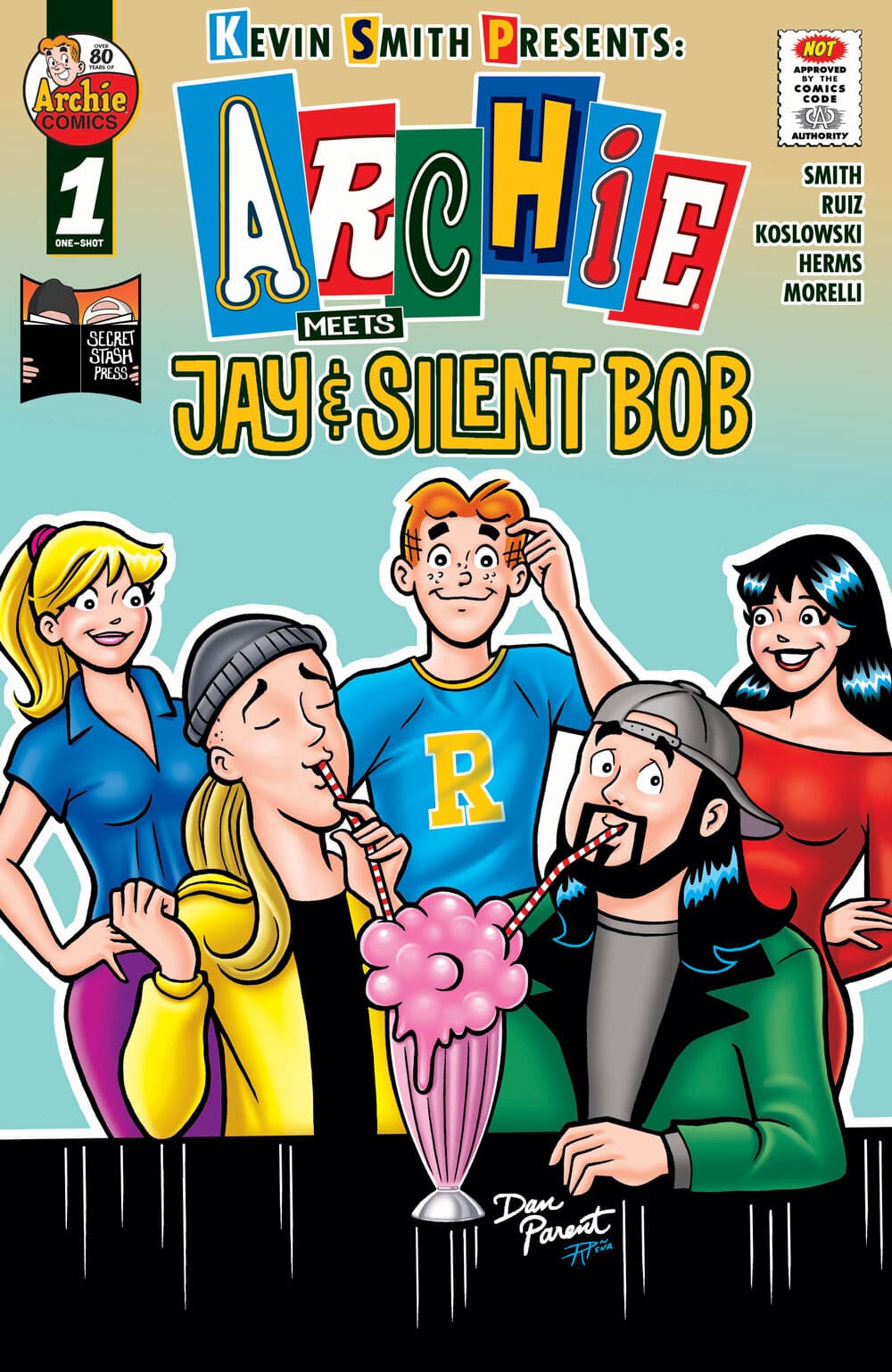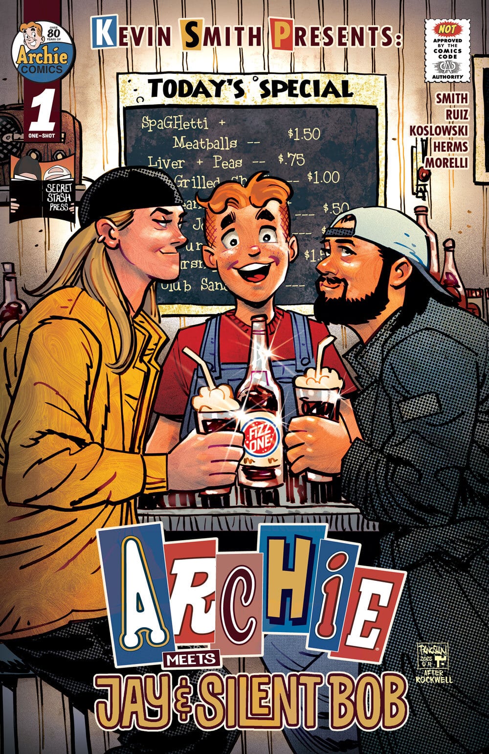 SNOOCHIE BOOCHIES, ARCHIE FANS!! Yes, you read that right-acclaimed writer, director, actor, producer, and podcaster Kevin Smith takes the teens you know and love from Riverdale on the wildest ride of their lives. What’s supposed to be a summer job at Quick Stop for Archie Andrews turns into so much more; from a budding friendship with co-worker Randal Graves, crashing a Pussycats concert, a potential new love interest, Jay and Silent Bob being, well, Jay and Silent Bob, and a musical number that will be burned into your brain forever. Plus, could Jay and Silent Bob even help Archie to finally choose between Betty and Veronica? SNOOGANS!! Featuring legendary Archie artists Fernando Ruiz and inker Rich Koslowski, this is a DOUBLE-SIZED, CAN’T-MISS event FOR MATURE AUDIENCES unlike anything we’ve ever done before!