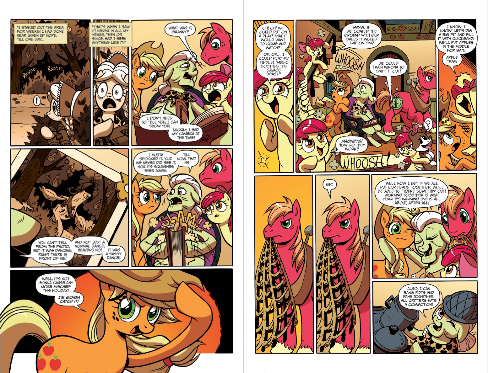 It’s almost Hearth’s Warming Eve, and the Apple family is busy at work preparing an array of tasty apple treats for all of Ponyville. But when a mysterious creature starts ruining their crop, Applejack sets out to find out who’s behind this tomfoolery! Who, or what, is the SASS SQUASH? Then, when Twilight Sparkle and Spike get stuck in a snowstorm, Twilight reads some classic Equestrian holiday tales to pass the time, including The Flying Reindeer, The Toy and the Mouse, and ‘Twas the Night Before Hearth’s Warming Eve.