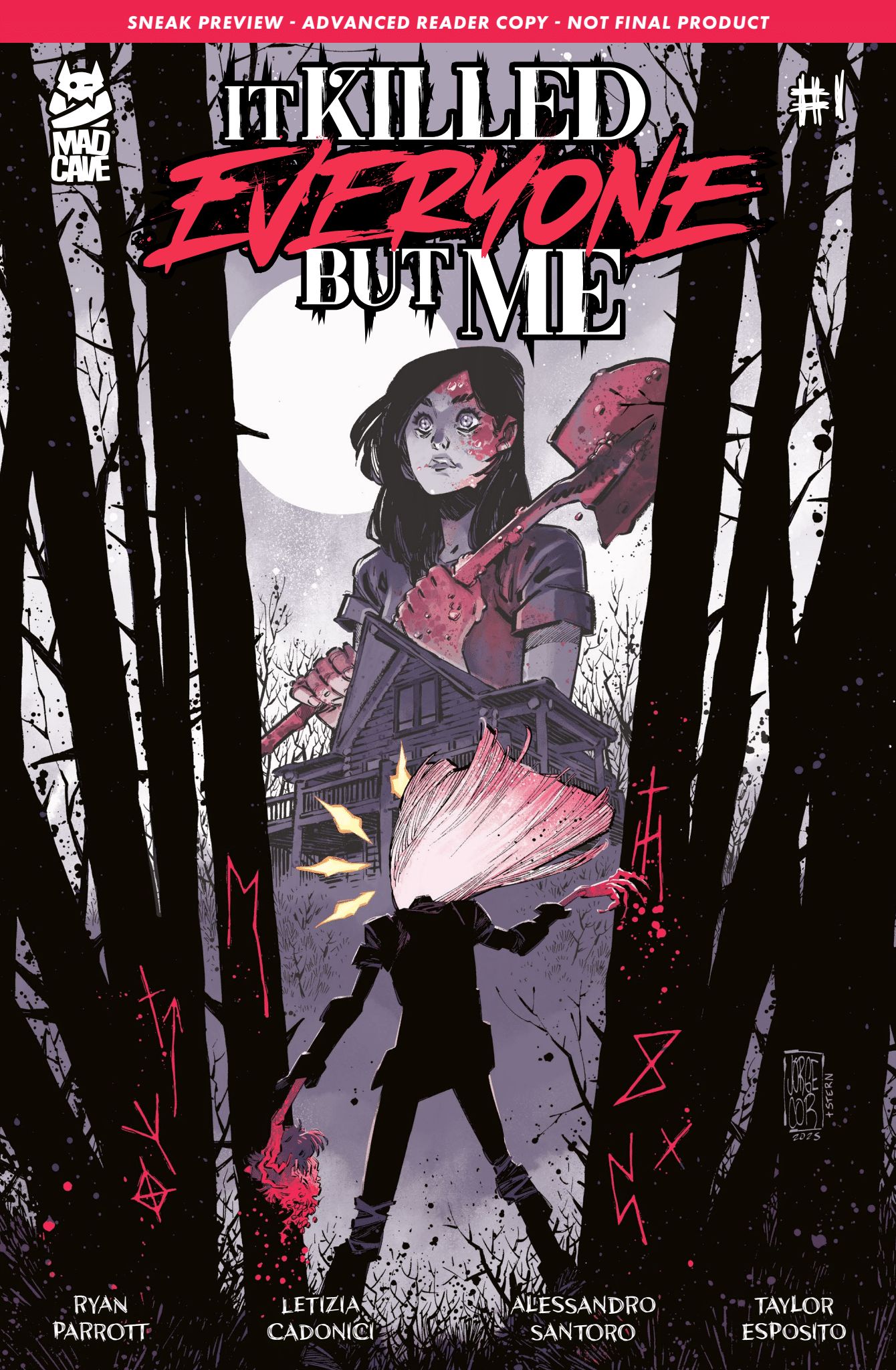 In the summer of 1996, Sutton Reed had it all. A popular teenage girl with amazing friends, a loving family, and a bright future. But it all came crashing down over one mysterious weekend that saw her friends brutally murdered and left Sutton as the sole survivor of the legendary Riverton Massacre. Now, three decades later, the death and disappearance of two local teens strike the Riverton community again, forcing Sutton, now a divorced single mother, to face the truth she tried so desperately to hide. Because to catch one killer, she’ll have to dig up the real monster she buried away all those years ago. Written by New York Times best-selling author RYAN PARROTT (Mighty Morphin Power Rangers, Rogue Sun) and drawn by acclaimed artist LETIZIA CADONICI (House of Slaughter, The Neighbors) comes a chilling, supernatural slasher for the next generation.