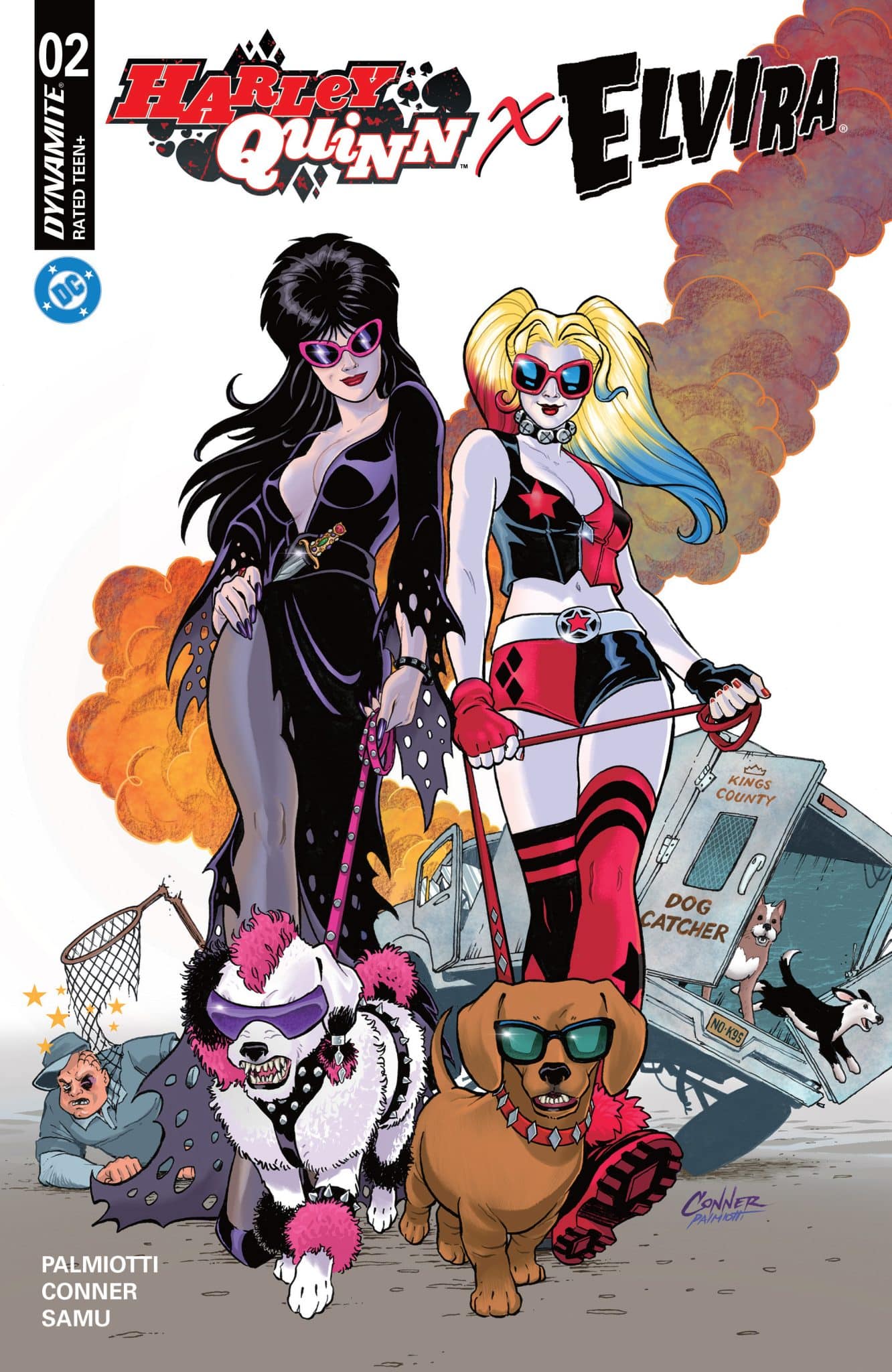 Famed Harley Quinn Whisperers AMANDA CONNER and JIMMY PALMIOTTI double down on the year’s most hotly anticipated crossover in Harley Quinn X Elvira #2, with Conner providing two captivating covers as well as several story pages to accompany artist JUAN SAMU’s interiors — all capped off by indecently alluring covers from JOSEPH MICHAEL LINSNER, CHAD HARDIN, and BEN CALDWELL!