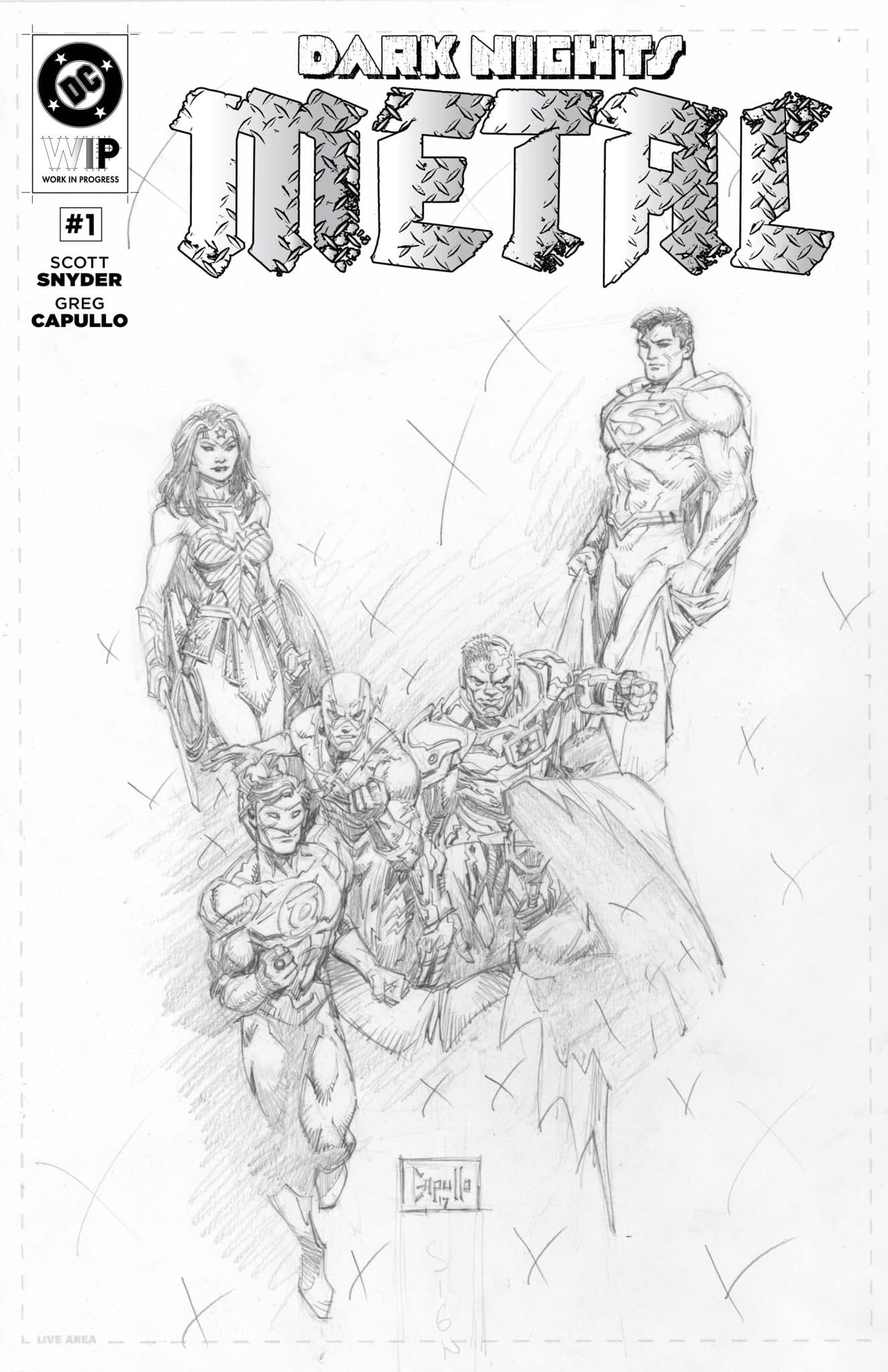 Step into the world of comics like never before with DC W.I.P. Get up close and personal with the stunning original artwork from one of comics’ greatest artists. Featuring both the original pencilled art of Dark Nights Metal #1 from Greg Capullo, and also the original inks from Jonathan Glapion! The brilliance of their work can be seen like never before in this massive oversize presentation. Includes a brand-new introduction by Glapion. Don’t miss your chance to own this incredible, one-of-a kind piece of comics history.