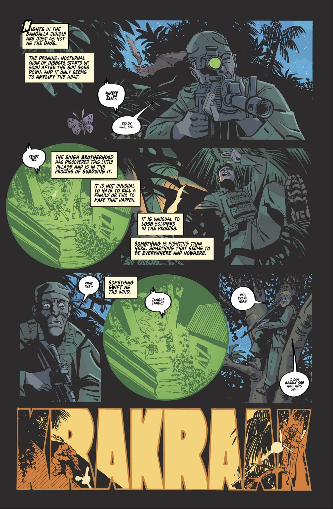 The Phantom has eaten away at the forces of the Singh Brotherhood — but the soldiers are seemingly endless, and the people of the Bandar village are still under threat. There’s an old jungle saying… ‘The Phantom never dies.’ Asif Singh will put it to the test. The battle grows desperate in the newest installment of Ray Fawkes and Russell Olson’s stylish epic!