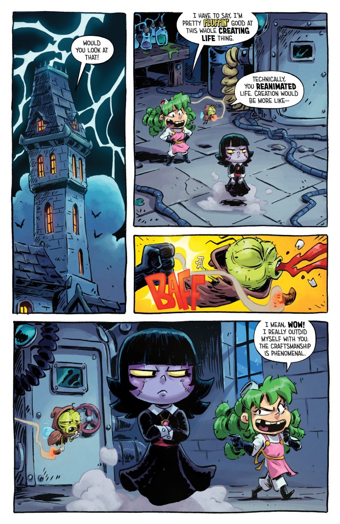 Once you’ve mad-scienced your way to a Frank-like monstrosity, there’s just one thing left to do… No, not make it a bride, that’s gross. You gotta find it a friend! Skottie Young, Derek Laufman, and the IHF crew continue their gothic horror experiment in THE BFF OF GERTRUDENSTEIN!