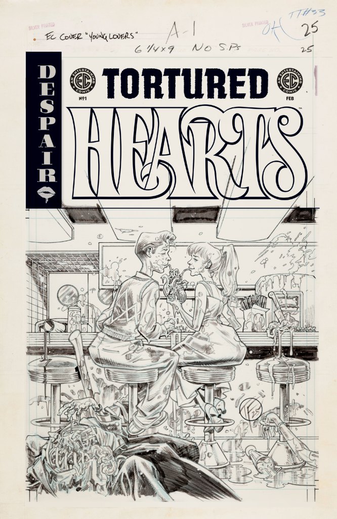 ROSES ARE RED, CORPSES ARE BLUE, AND SOON YOU’LL BE TOO! Oni Press and William M. Gaines Agent, Inc. present an eye-piercingly perilous preview of Tortured Hearts #1 – EC Comics’ newest giant-sized special presenting 56 pages of rage-fueled romance – with a first look at “The Spark” by real-life husband and wife Tini Howard and Blake Howard, alongside astounding artist Arjuna Susini!