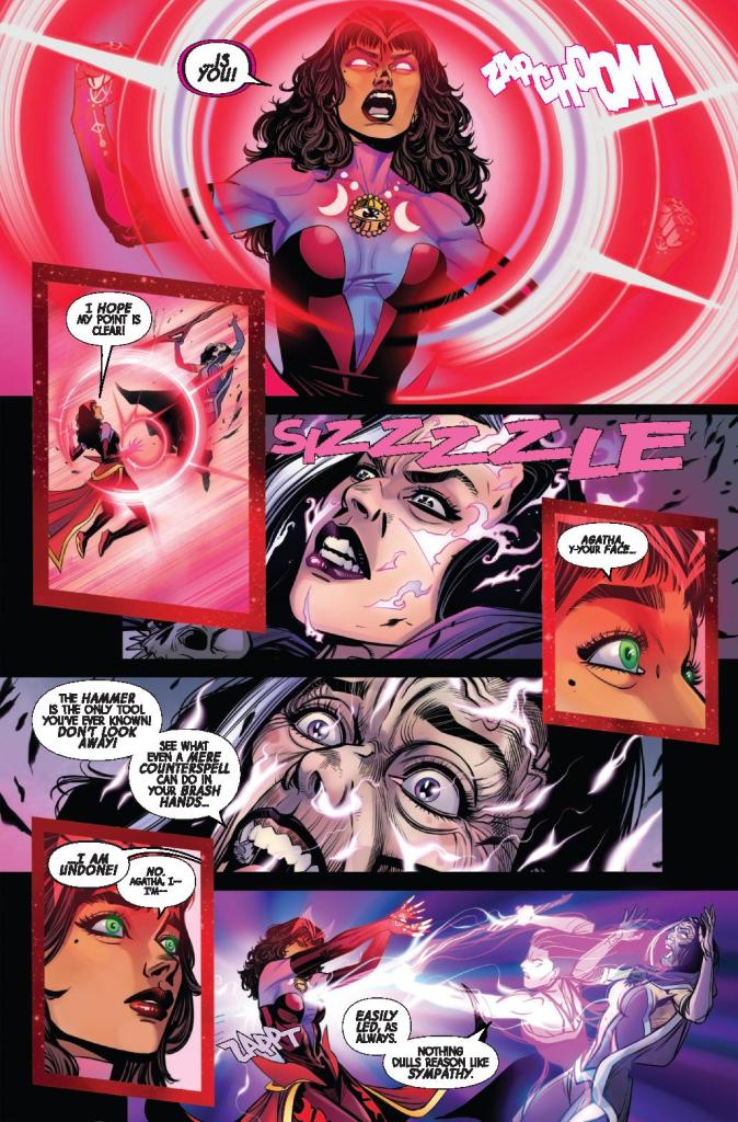 WHO IS THE TRUE SORCERESS SUPREME? The Vishanti have called forth their own Sorcerer Supreme to challenge Wanda Maximoff’s power: Wanda’s former mentor, AGATHA HARKNESS! Wanda and Agatha are once again at odds as they duel for the title. Only one will remain the one true SORCERESS SUPREME…
