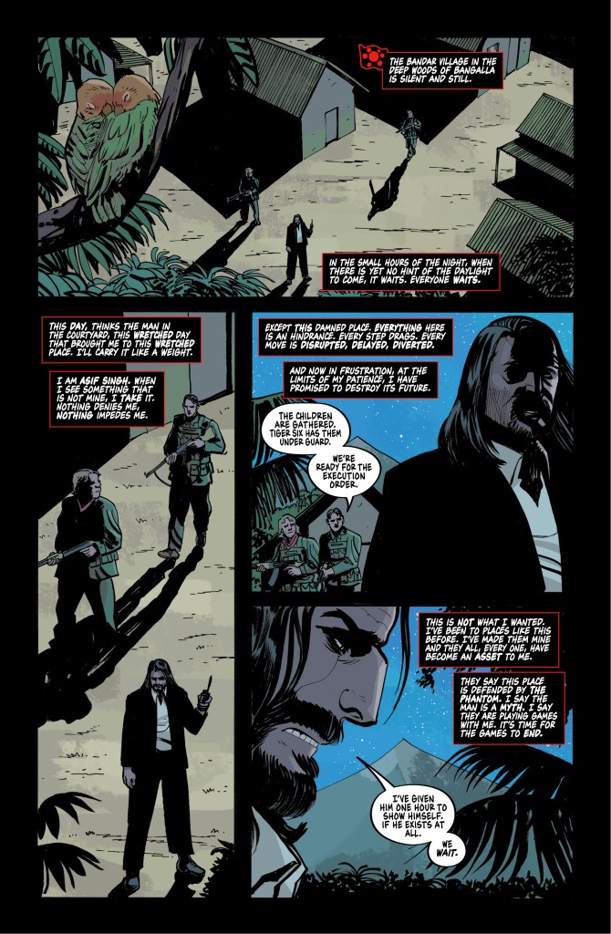 HE WHO DEFIES THE PHANTOM DEFIES JUSTICE ITSELF! The Phantom is injured and finally lies within Arif Singh’s gun sights. But most of Singh’s men have already fallen to the Phantom’s mark — and the leader of the Singh Brotherhood has dangerously underestimated a legend. Justice stalks the jungle as the first arc of Ray Fawkes and Russell Olson’s ongoing epic comes to an explosive close!