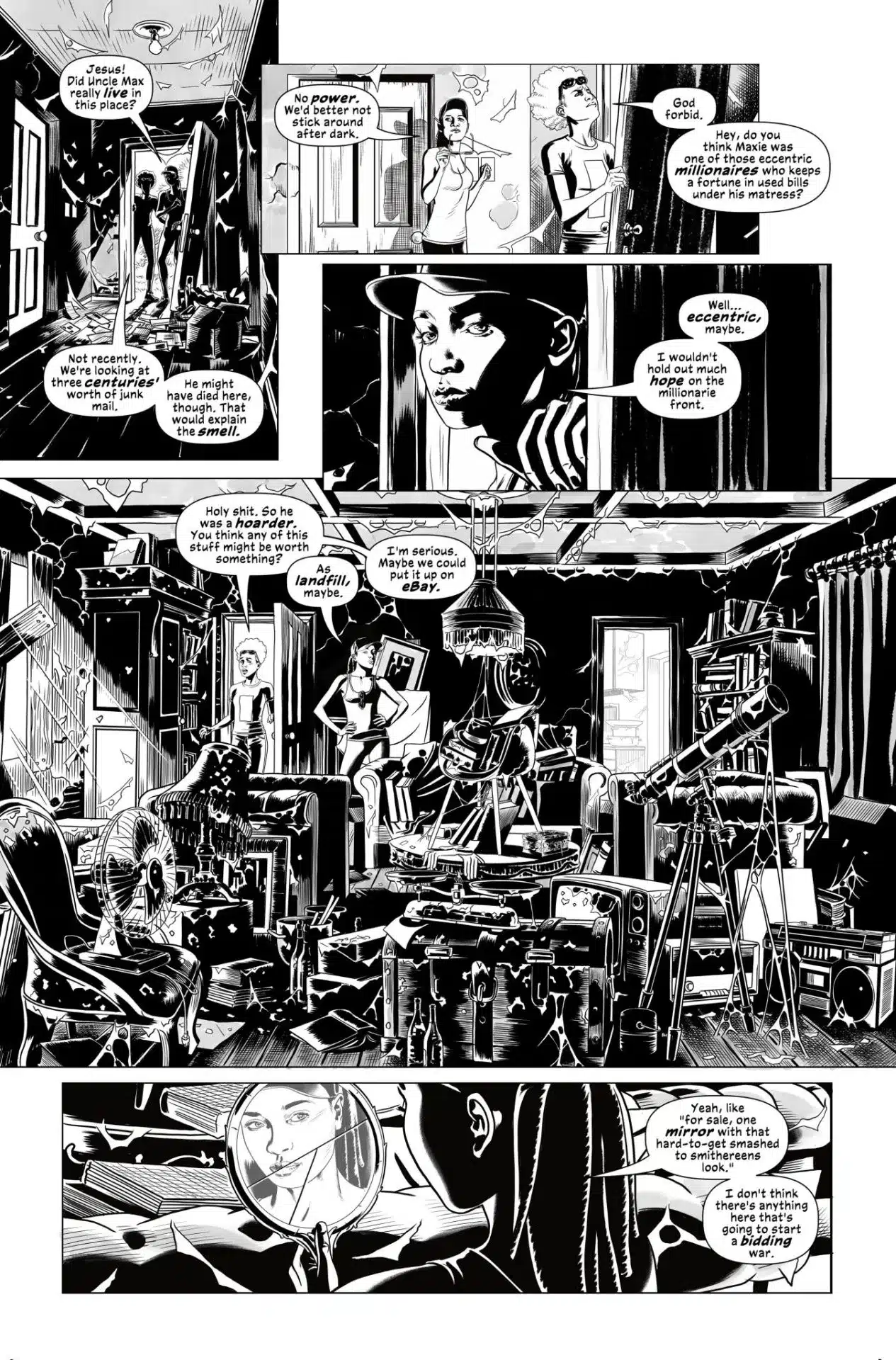 Experience the world of GhostBox in stark black and white! Chloe and Jan come into an unexpected inheritance, and it couldn’t come at a better time for Chloe. Desperate for cash, she advertises her late uncle’s possessions online, and gets a very motivated buyer. But who is Anton Messer? And what is his real interest in the ghostbox?
