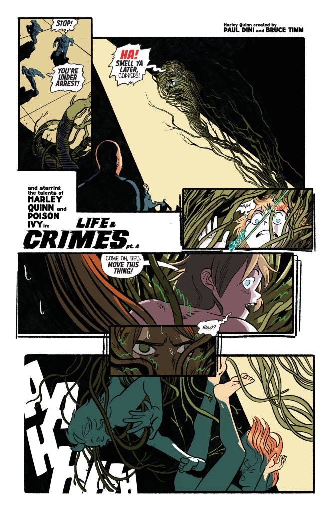 Harley and Ivy are on the run with almost nothing but the shirts on their backs (and they barely even have those)! With all of Gotham City out to get them, the recently friendlier-than-before super-villains appear to have nowhere to go! I legally can’t make any promises, but it’s very possible that [censored to protect the innocence of middle-aged adults everywhere] in this issue!