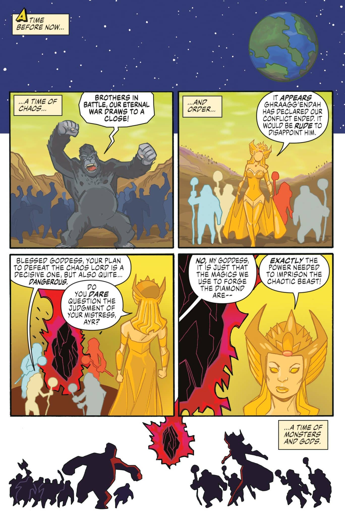 Nothing Can Stop… The Ape! tells the story of Maxwell Morgan, a twelve-year-old boy who will go to any lengths to save his mom (who has been possessed by the spirit of Thuuna, an angry primordial goddess), even going as far as freeing the goddess’s immortal enemy from his magical prison. With his faithful French bulldog and four primitive cave people gifted with the powers of the elements, Maxwell must convince the newly-released gorilla god of chaos, ghraagg’endah, to help them save the world from Thuuna’s genocidal intentions and free his mother from the goddess’s clutches.