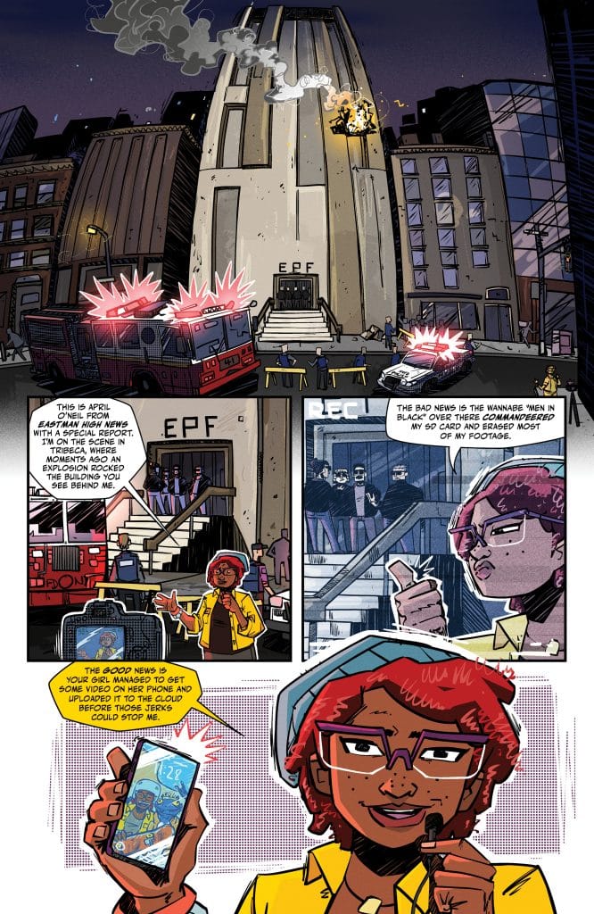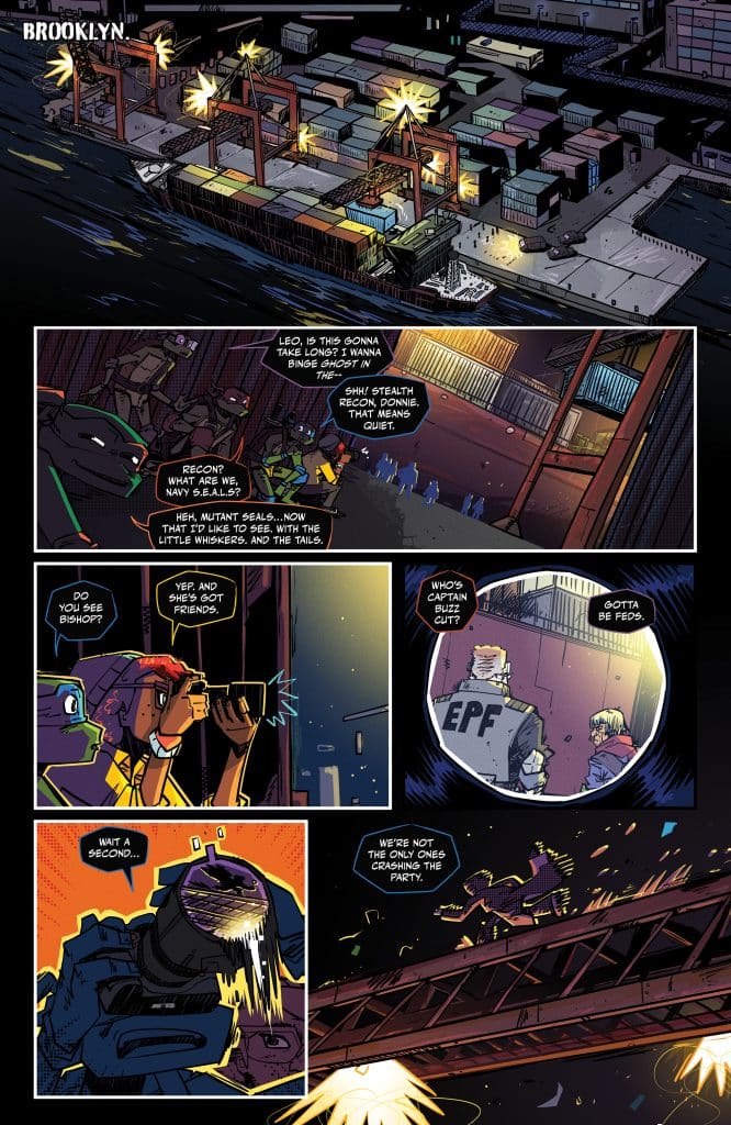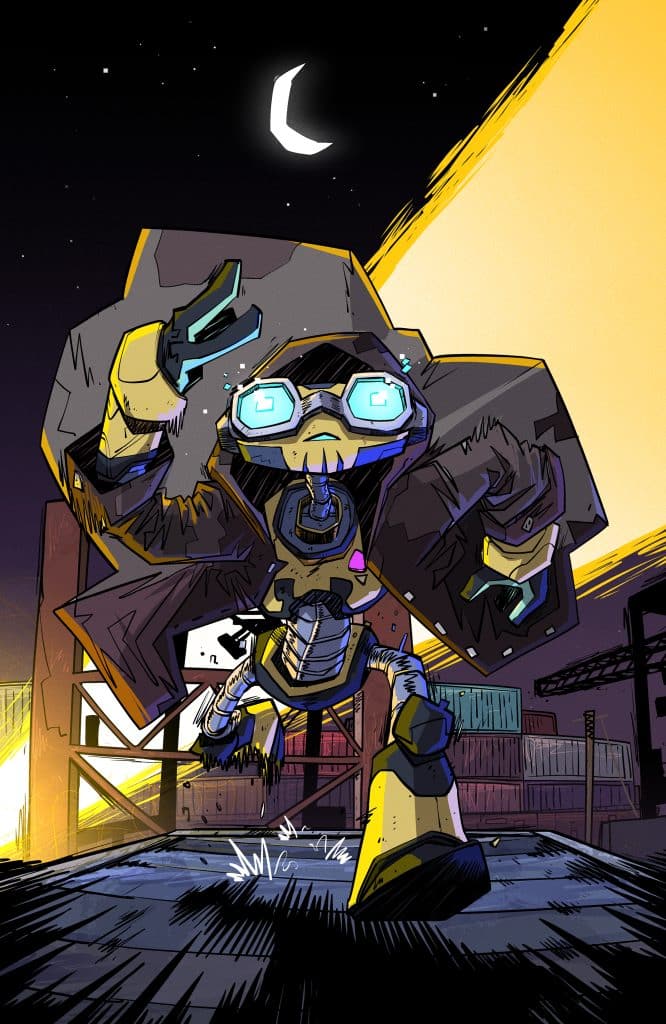 Fugitoid is here: A classic TMNT ally makes his comics debut for this fresh era of turtle power. And he needs help! When the Ninja Turtles run across Fugitoid in the midst of an E.P.F. attack, they aren’t sure they can trust this strange, hyperintelligent robot. But they’ll soon learn that the runaway is more than meets the eye.