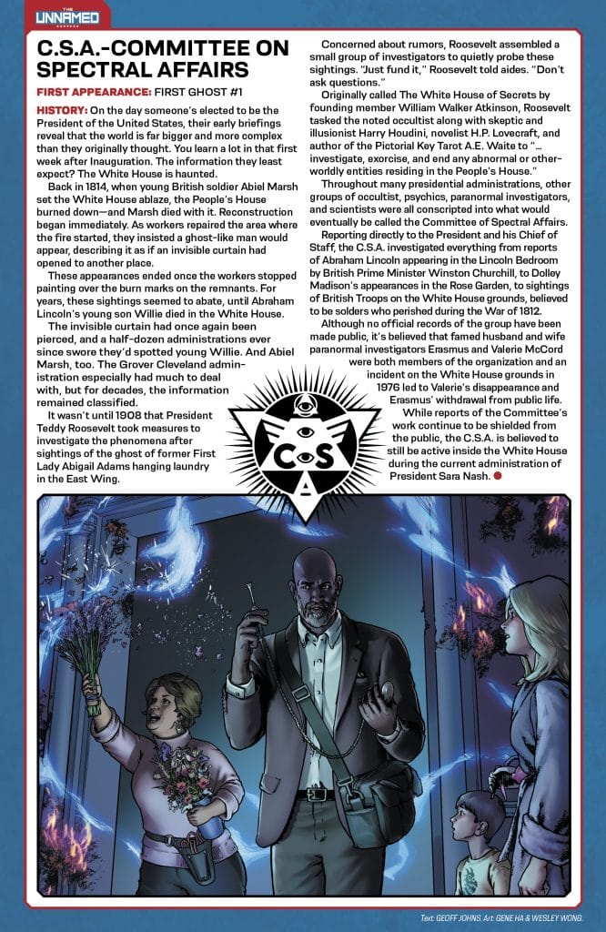How hot does Geiger burn? What is the Committee on Spectral Affairs? Did George Washington really die? This new limited series collects all-new entries teasing tantalizing stories to come, as well as updated goods on Ghost Machine’s characters from across its hit titles beginning with The Unnamed Universe from GEIGER, JUNKYARD JOE, and REDCOAT! With interior character art from Ghost Machine’s all-star artists, don’t miss the outstanding classic homage covers that let you decide what ’80s inspired guidebook look you want to collect! This initial volume covers the first half of the world of The Unnamed from Albert Einstein to the High Plains Zoo!