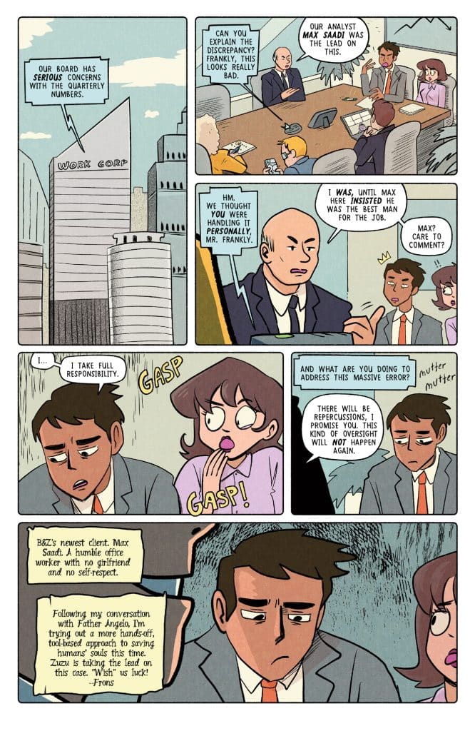 B&Z’s Life Coach “client of the week” is a girlfriendless office worker. Reinvigorated by his conversation with Father Angelo, Bifrons tries a more hands-off, tool-based approach to saving humans’ souls. Will Bifrons’s new strategy help his client find love, or will he be doomed to rot in Hell?