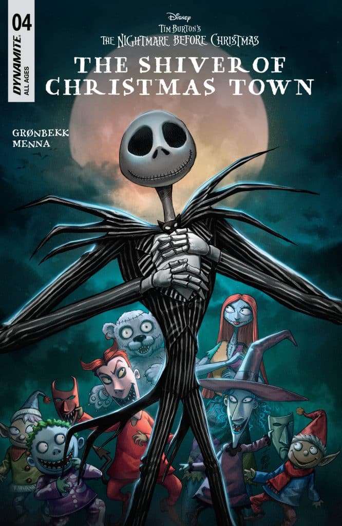 SHIVER IS ON THE LOOSE! While still recovering from the tricks perpetrated by the rascally trio of Lock, Stock, and Barrel, the residents of Christmas Town now face a far greater threat to their civic harmony. With an unleashed Shiver finally showing his scary side, and Oogie Boogie’s ghouls running rampant in pursuit, the cozy little holiday town’s first-ever Halloween celebration looks as though it’s going to be permanently derailed. But with luck — and a bit of teamwork — Sally, Mrs. Claus, and their group of unlikely heroes might yet save the day! Grab a cup of cocoa and settle in by the fire for the chilling conclusion to TORUNN GRØNBEKK and EDU MENNA’s multi-holiday madness in Tim Burton’s The Nightmare Before Christmas: The Shiver of Christmas Town #4 — featuring colorfully frosted covers lovingly baked by JAE LEE & JUNE CHUNG, SOO LEE, and ALAN QUAH, as well as a special selection from the Disney Library!