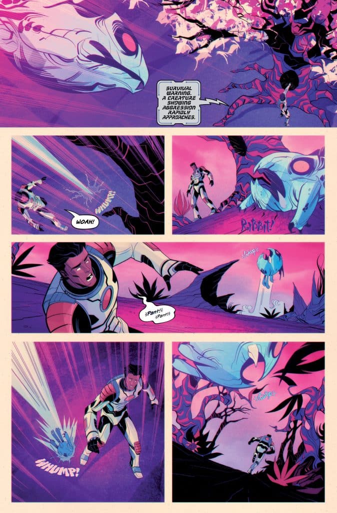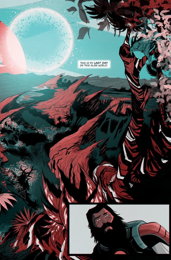 From writer Carlos Giffoni (Strayed, Space Riders) and artist Juan Doe (Guardians of the Galaxy, The Fantastic Four), Two Suns centers on a scientist suffering from amnesia who wakes up on a wild alien world and struggles to survive its perilous environment as returning memories reveal the wicked actions that led him there.