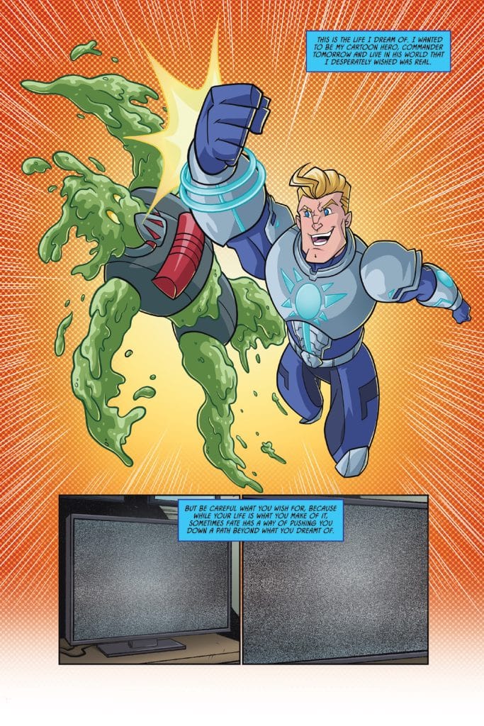 When Kyle is pulled into the universe of his favorite childhood cartoon and toy line, he becomes Commander Tomorrow: The Space Adventurer, joining Vega and Ascendor to battle the villainous Zygore and his army of Slymeborgz.