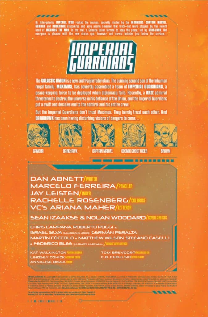 The Galactic Union has brought peace to the galaxy. But who will keep that peace? It’s another day and another dirty job for the IMPERIAL GUARDIANS as MAXIMUS of the Inhumans sends his black-ops team to handle a problem that nobody else wants to touch. Our heroes head for Xarth, a minor civilization with major ambitions. The Xarthians have got their hands on something that could make them major players on the galactic stage overnight — or bring down the Union ENTIRELY. And you know they’re not going to give it up without a fight…