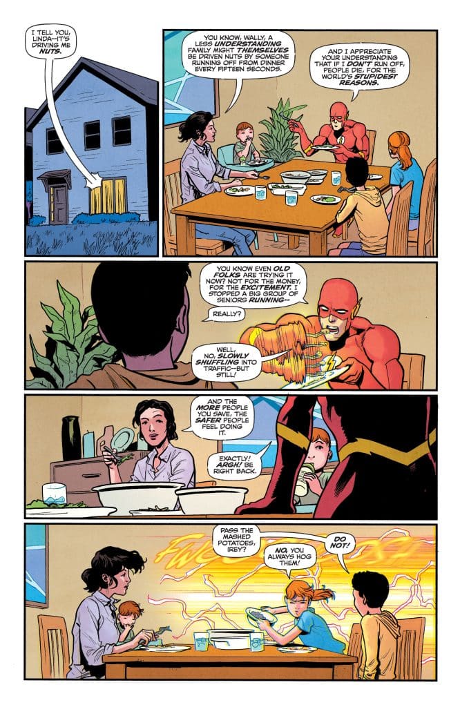 THE FLASH AND CAPTAIN COLD… TEAM UP?! Okay, so maybe Flash’s world has gone crazy, and maybe he’s having to run around the city several times a minute just to save people from themselves, but at least things can’t get worse, right? I don’t know why people still use that rhetorical construction. Every time you say, “At least things can’t get worse,” you’re just setting things up to get way worse, Wally! In this issue: escalating stakes! Flashes of insight! And a strange and unexpected team-up that brings Flash and Captain Cold together… with the fate of Central City hanging in the balance! Told you things could get worse. Sheesh, Wally. Come on.