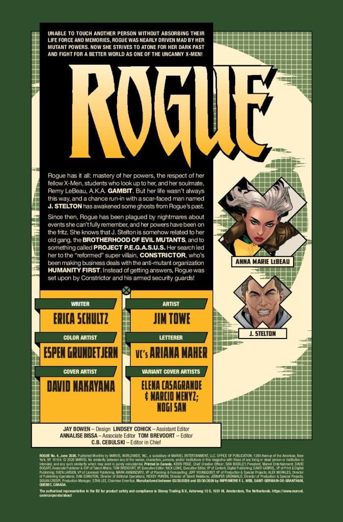 Rogue is tangled in Constrictor’s web of lies and no closer to the truth of her past. Meanwhile, the mysterious John Stelton stops running from his own past and decides to confront Rogue head-on!