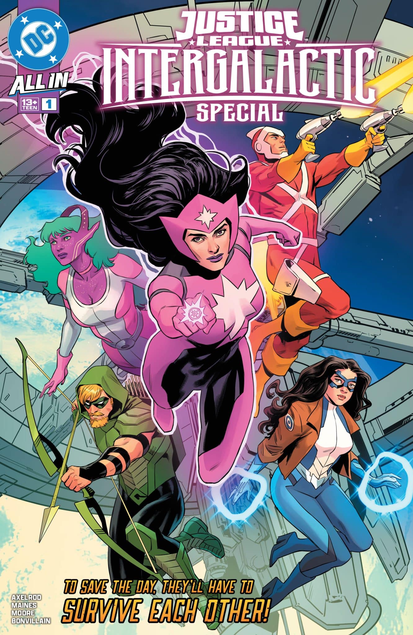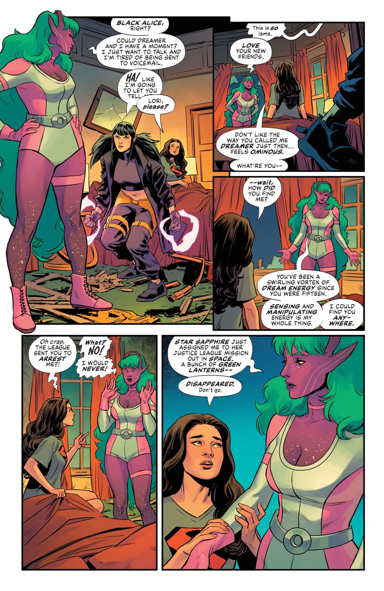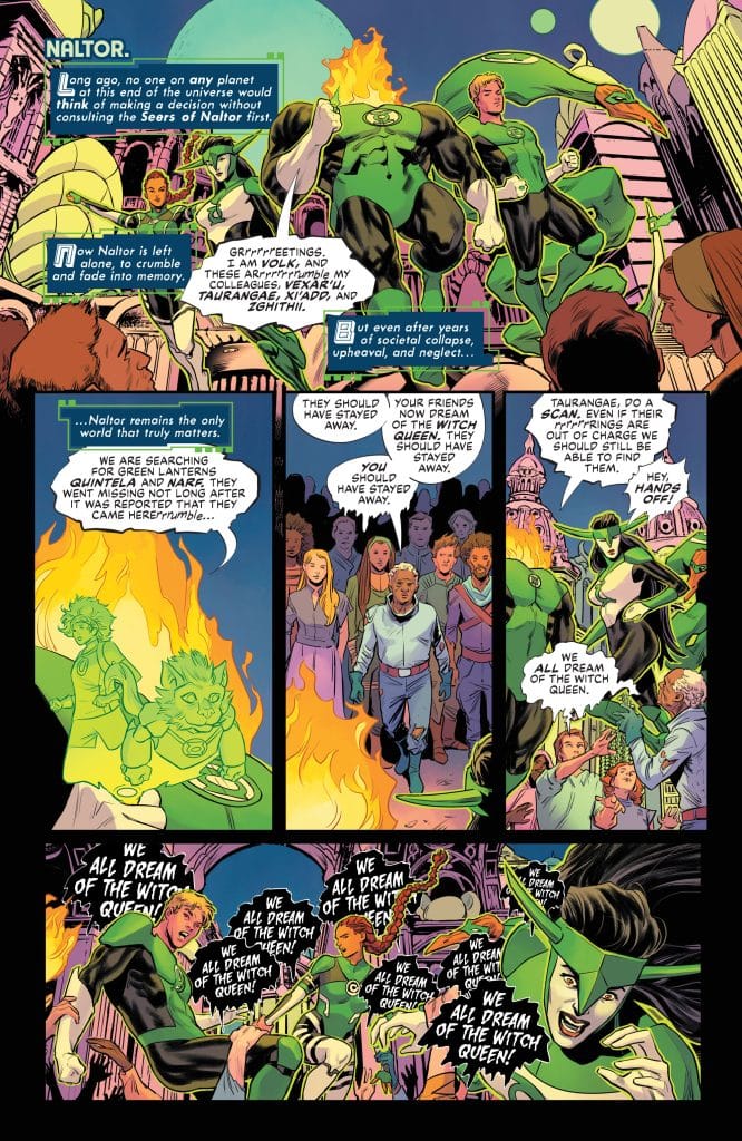 A NEW CHAPTER OF THE ALL IN: ACT II SAGA! The planet Naltor and the Green Lanterns that protect it fall under the spell of the wretched Witch Queen, who harnesses the planet’s dream energy in hopes of taking over all that lies beyond. But have no fear, Star Sapphire’s assembled team of Justice Leaguers will no doubt liberate them all! Except, well, Green Arrow sure does hate space. And Adam Strange’s ship comes under attack before it even enters Naltorian orbit. And Galaxy invited her best friend and one of the League’s most wanted, Dreamer, along on the mission without telling anybody. And Dreamer’s visions seem to spell doom from the very start. Just when Star Sapphire thought she was getting the hang of her powers and the whole team-leader thing… Will this team of disparate dynamos figure out how to come together to win the day? Or will they, too, succumb to the Witch Queen’s all consuming hive mind?