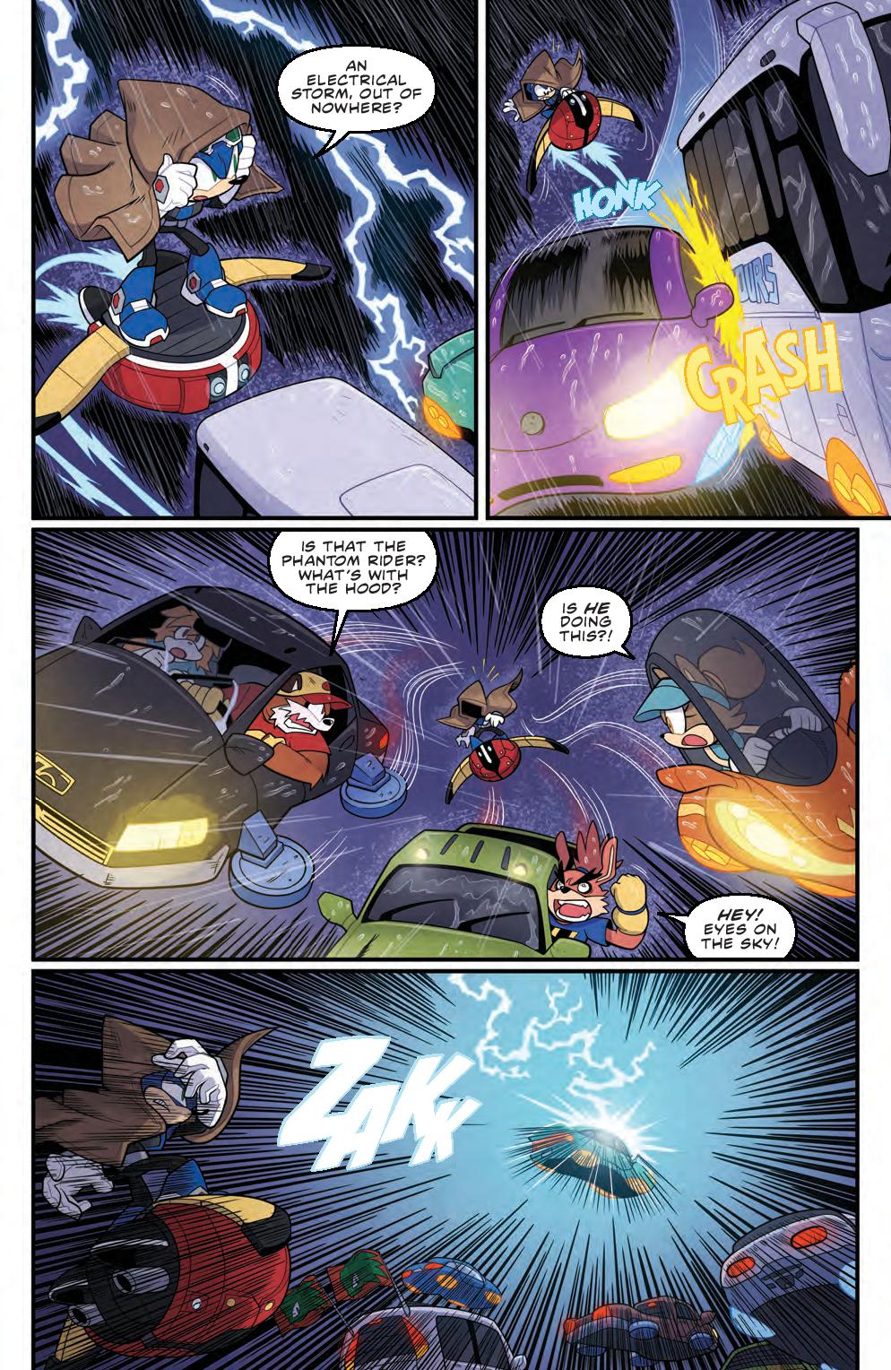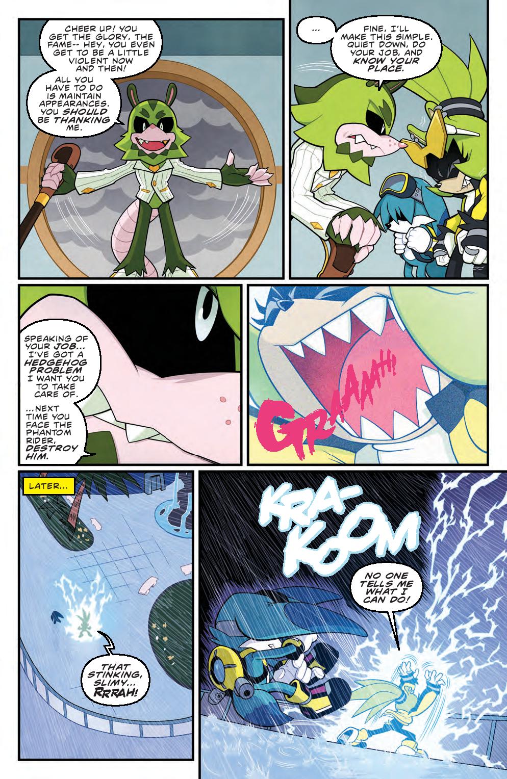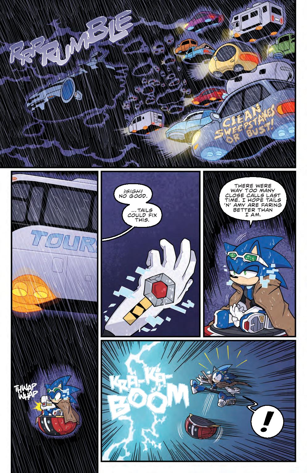 Being the Phantom Rider isn’t easy, but there’s no rest for the wicked. Sonic is caught in a literal perfect storm of a traffic jam, all while he’s pursued by the relentless Jet the Hawk! Perhaps an unexpected meeting-and reveal-will help raise his spirits? Meanwhile, aboard the Restoration’s ship, Tails and Amy’s luck finally runs out!