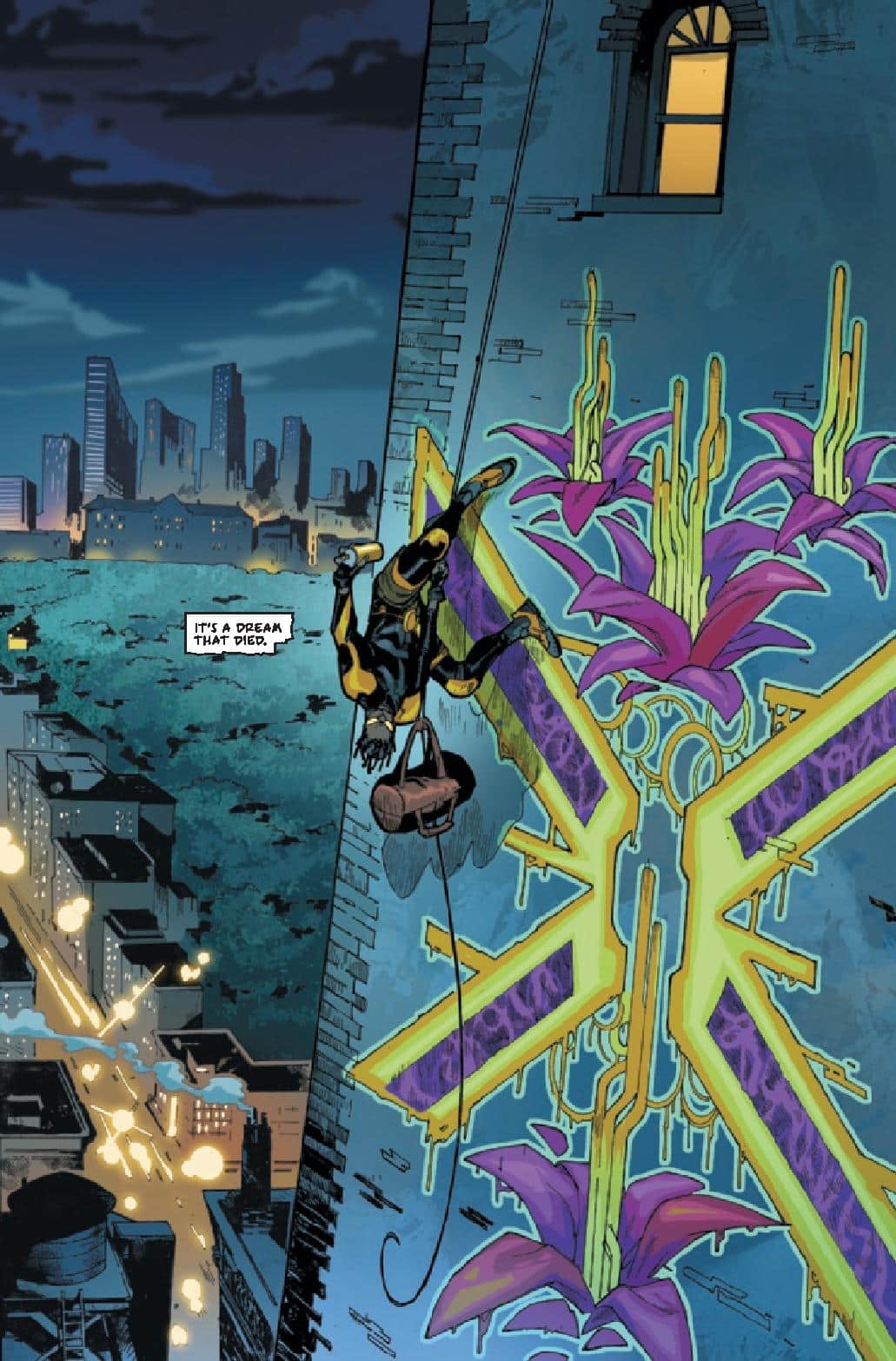 I love how Kieron Gillen writes We Called Them Giants’ protagonist, Lori. (And not just because she has the same name as my mom.) From page one, he and Hans immediately unpack the reason why she’s distrustful and thinks that nothing good will happen to her as she’s recently been adopted, and before that, went from foster parent to foster parent. Early on, Lori says “Everyone will leave you”, and there’s immediately a Stephanie Hans splash of her crying to an empty street. She is more cautious than Annette who still believes in things like God and (early on) her parents returning and has impeccable survival instincts as evidenced by various panels where she sneaks (Or skulks) around the giants and gang members. However, once she lays eyes on that first giant, her life is irrevocably changed. Lori’s journey is beautiful and organic as she doesn’t make a full 180 as the book progresses, but she has several emotional realizations that made me connect to her and love her more as the main character.
