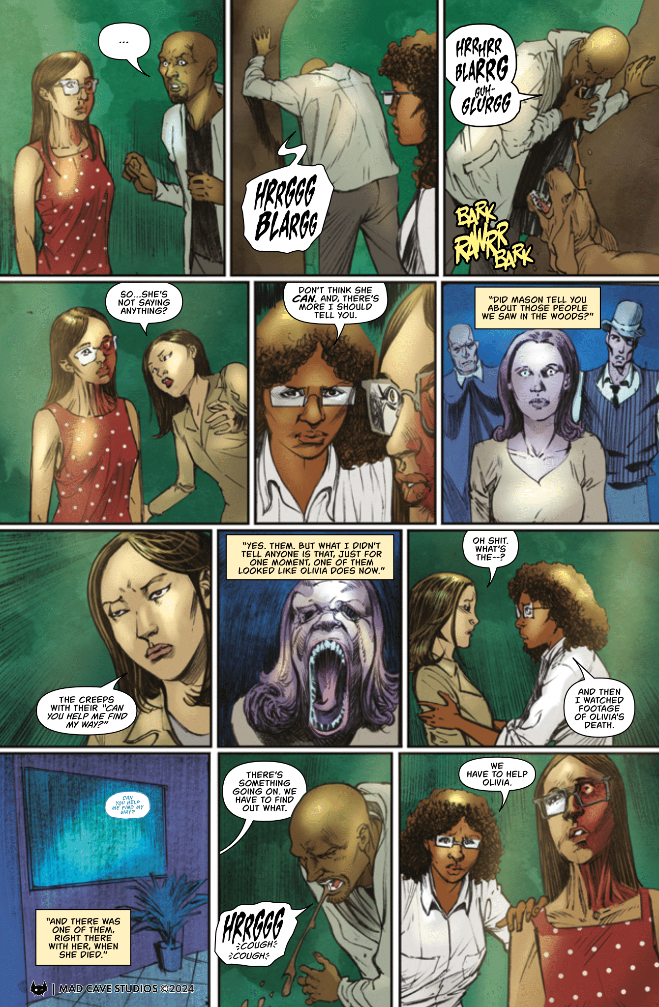 In this scene, the Youth Group demon hunters demonstrate one of their more unorthodox training methods. Because Cortland has been possessed before, his cohorts have taken to shoving demons inside him to work on their exorcisms. They’ve given this horrifying practice the deceptively adorable name “The Tussle.”
