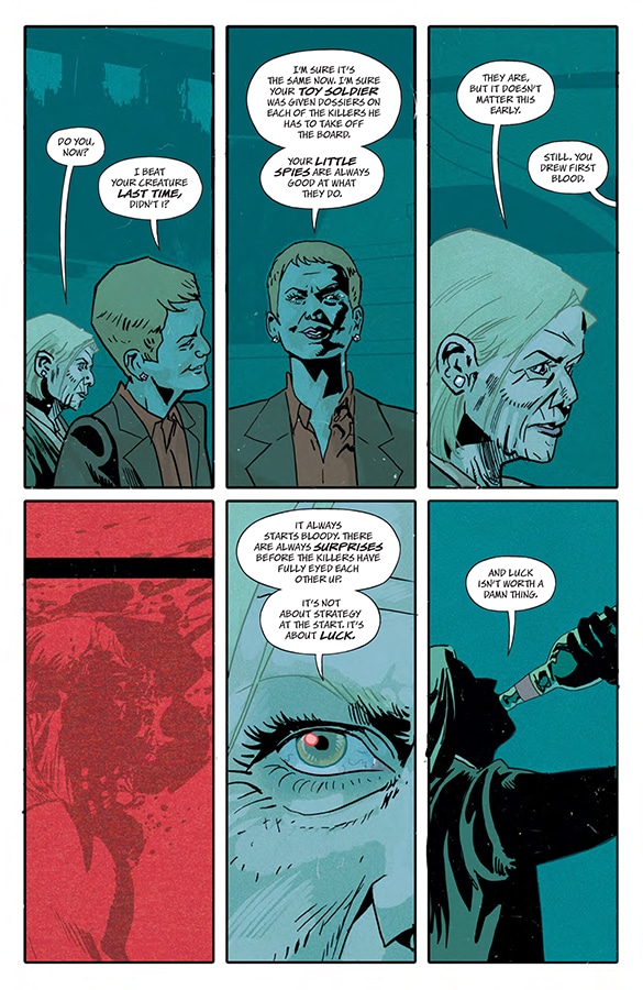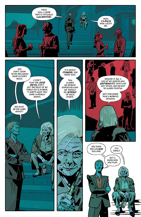 Exquisite Corpses #2 (Image Comics) – 12 families compete to control the world by unleashing killers to battle it out in a small town. The first issue was awesome with its video game infused style.