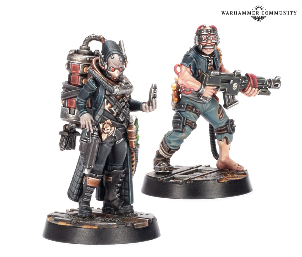 For Necromunda, you can get Abyssal Ferryman: Hagthor Jarlun and Aster Felsturn who help ensure safe passage to the Secundan Abyss. These miniatures are cast in Forge World resin and come with their rules in the box, which can also be found in Necromunda: The Book of Desolation.
