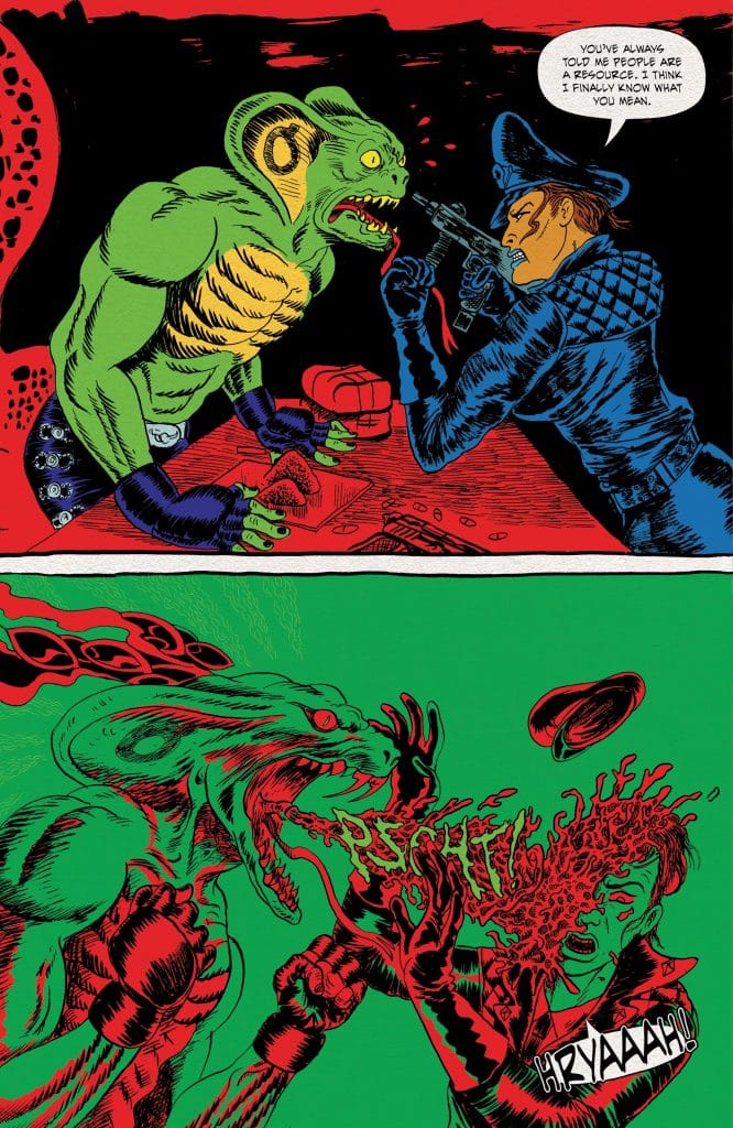 After the events of issue one, Bash and Marla are awash with grief and rage. Marla confronts Lord Slyther, while Bash confronts the bottom of a bottle. Both are left worse for wear, but together, the would-be enemies may have what it takes to reap the revenge they desperately desire.