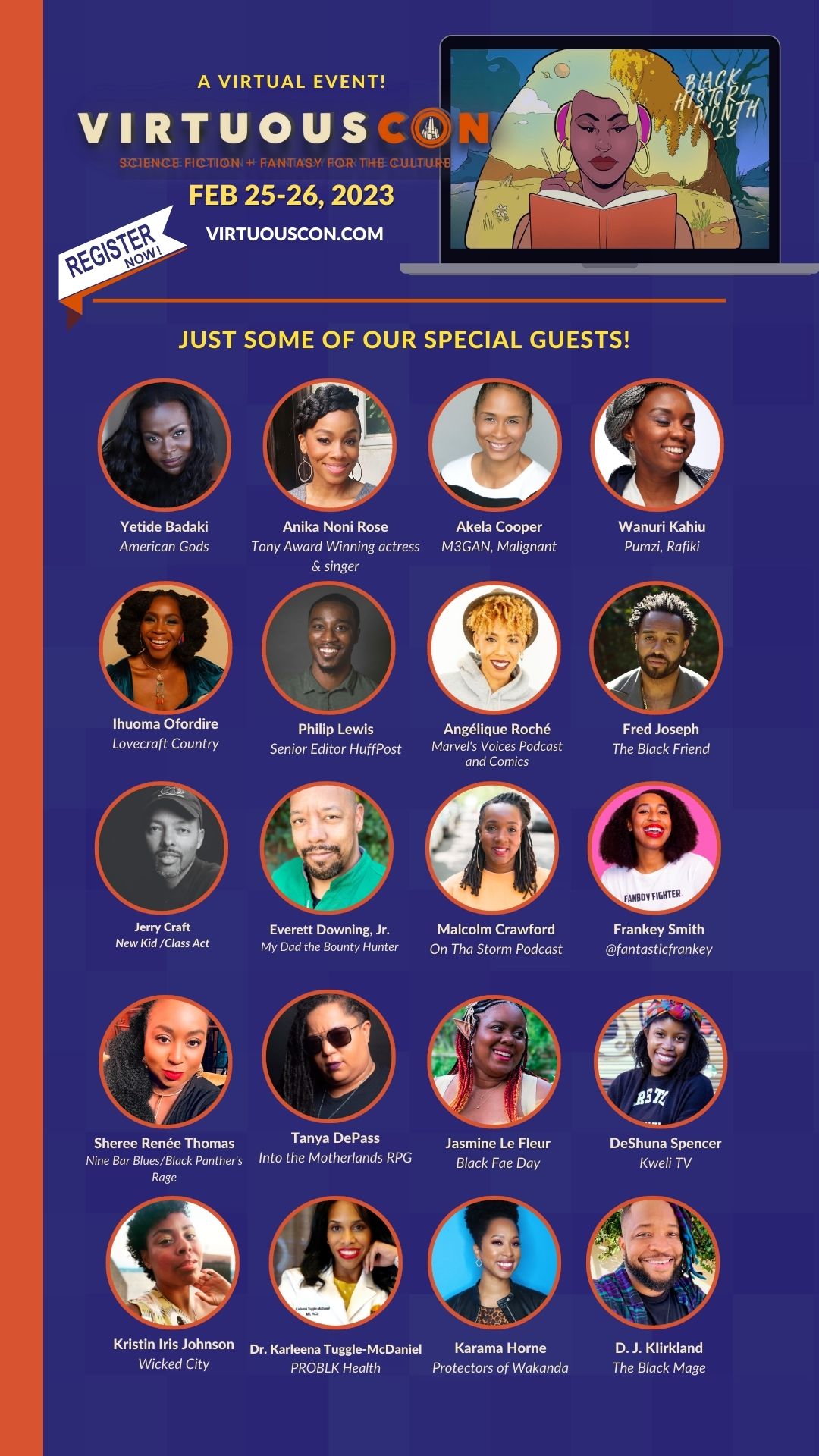 As a Black woman-owned convention, Virtuous Con: Black History Month has a special meaning for its founder. “For our third Black History Month convention, we really wanted to push the boundaries of our panel topics beyond what you’d typically expect from a sci-fi convention.” Cerece Rennie Murphy explained.