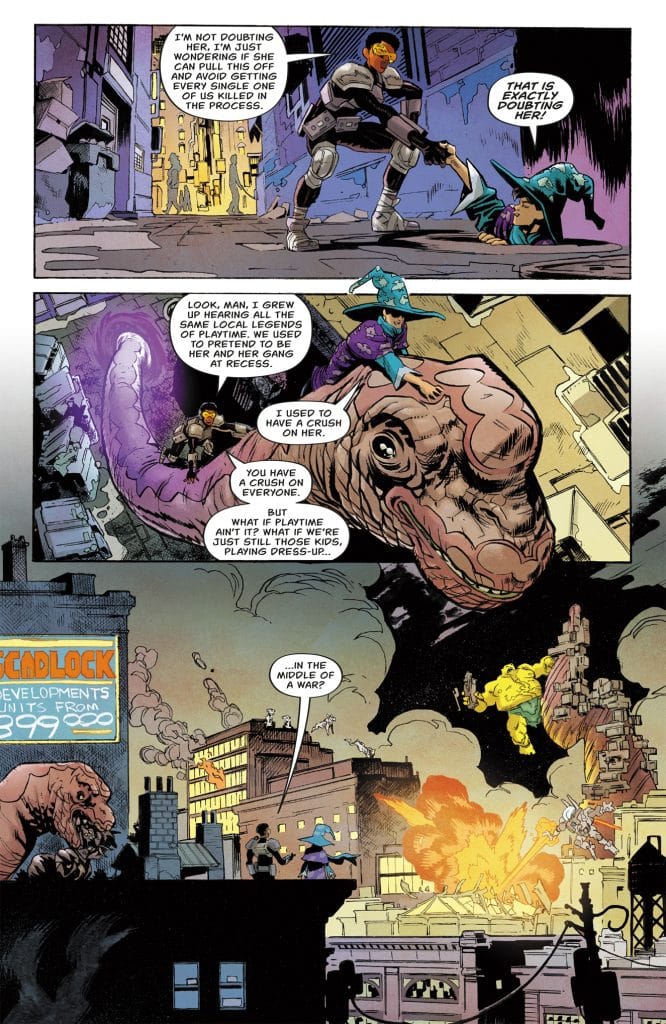 Minor Threats from past and present unite to begin their final assault against real estate mogul Cooper Scadwell and his nefarious plans for the multiversal gentrification of Redport. But they’re not the only players to enter the fray as Frankie’s daughter Maggie aka Modder and her team of teen superheroes, The Action, make their move to bring Playtime to justice. An epic battle erupts beneath the subterranean tunnels of Twilight City but not everyone is making it out alive. Don’t miss out on the penultimate issue to our explosive finale as Frankie and costumed crime prepare to make their last stand!