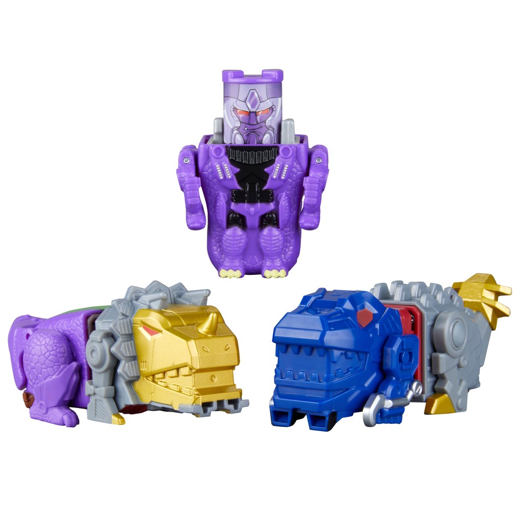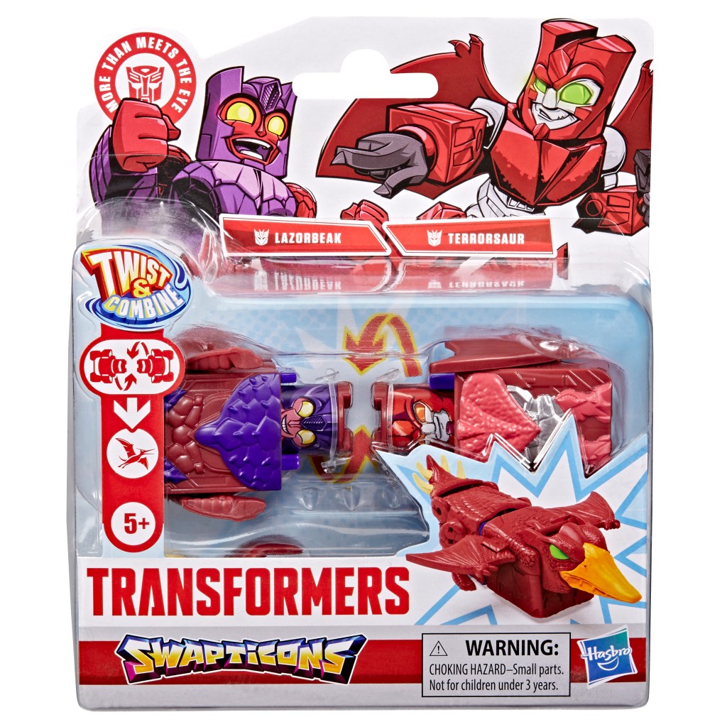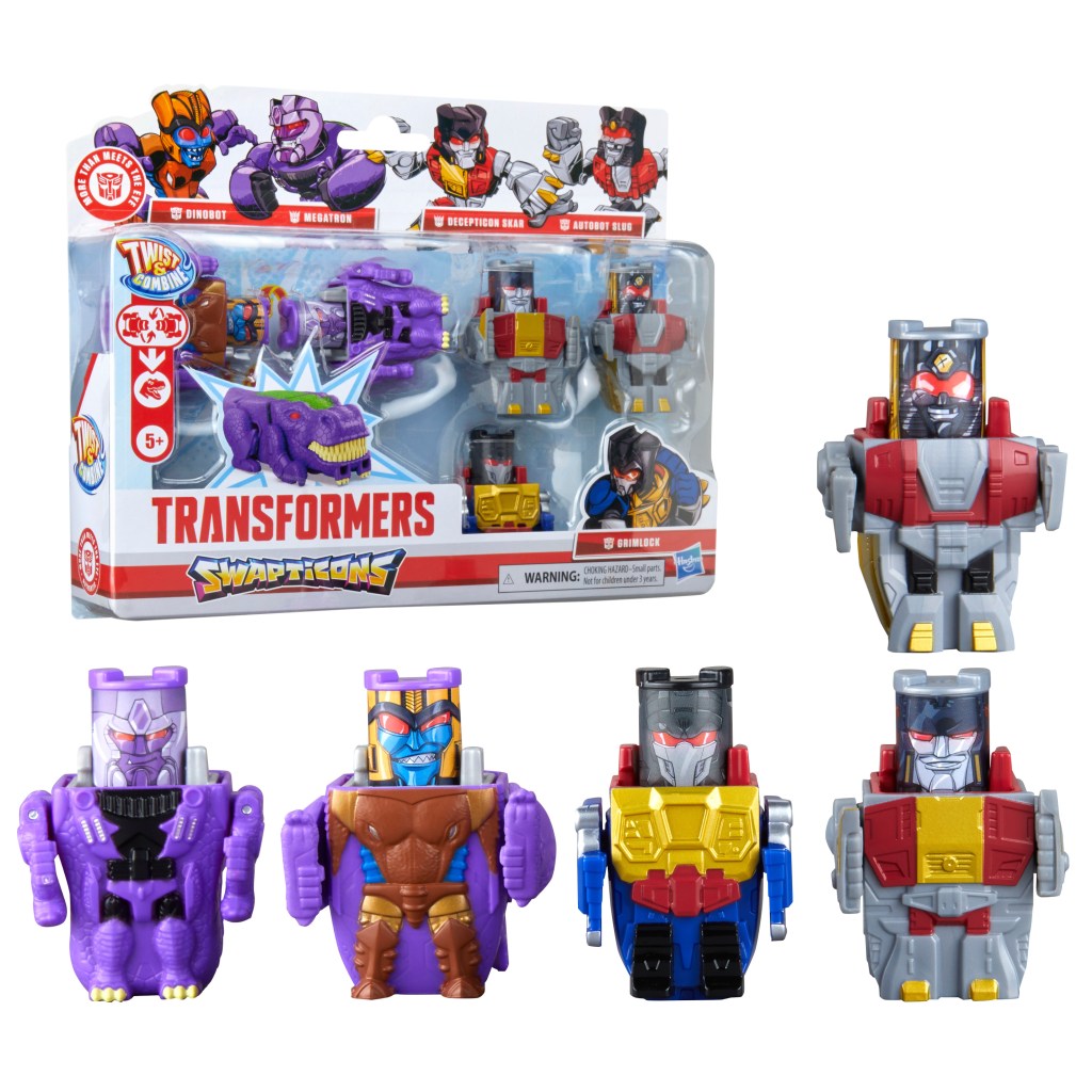 Match, twist, combine, and repeat with TRANSFORMERS Swapticons toys! The set comes with 5 stylized small action figures, Autobot Slug, Decepticon Skar, Megatron, Dinobot, and Grimlock. Twist them together to make awesome dino-themed alt modes, then untwist to release! This Transformers toy set is perfect for fidgety fun, and since each TRANSFORMERS action figure is just 2 inches tall, they also make awesome travel toys. Look for more Swapticons action figure sets (each sold separately, subject to availability) and marvel at the imagination possibilities! Twist together 2 Autobots or 2 Decepticons and imagine a powered-up hero or villain alt mode, or mix them up for super Cybertronian chaos! These toys for kids make fun stocking stuffers, Easter basket stuffers, or small gifts for boys and girls ages 5 and up.