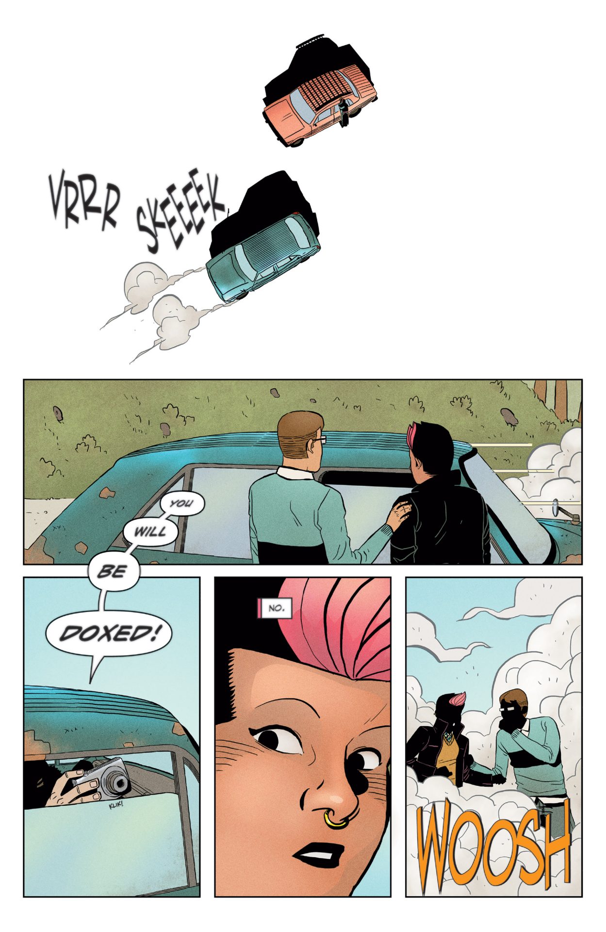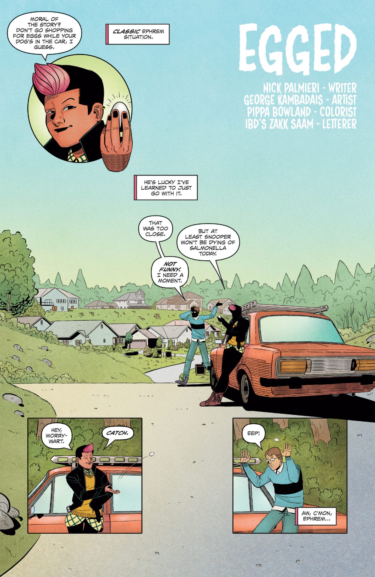 Maria’s quiet suburban life is upended after she accidentally eggs the car of a conspiracy theorist. Now this cunning and relentless adversary threatens to expose her long-hidden secrets! Thrills abound in this satirical one-shot from writer Nick Palmieri and artist George Kambadais (Buckhead, Short Order Crooks, The Black Ghost)!
