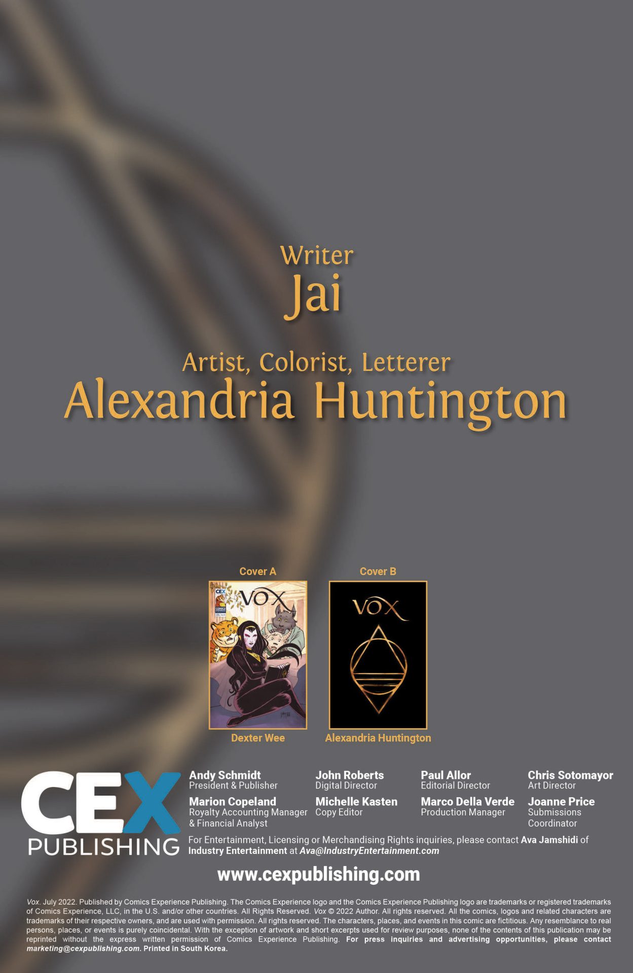 Can knowledge lead to salvation? Vox explores a colorful society teetering on the brink of annihilation and asks: can anyone resist succumbing to the voice of truth? Creators Jai and Alexandria Huntington delve into extremism and fanaticism through the lens of philosophical satire in this 32-page one-shot.