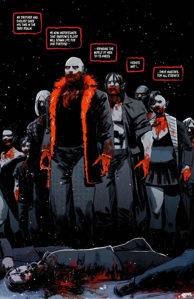 Bullets and teeth all shred flesh the same in this final oversize issue — vampires and gangsters are all out for blood. As the people of Barrow face enemies on all fronts, it’s now that humanity, bravery, and sacrifice must burn brightest. Will Jalen be the torch that leads them out of the darkness? Or is he the spark that dooms them to hellfire? Join us for the shocking conclusion to this cult-classic revival. The night is always darkest just before dawn…