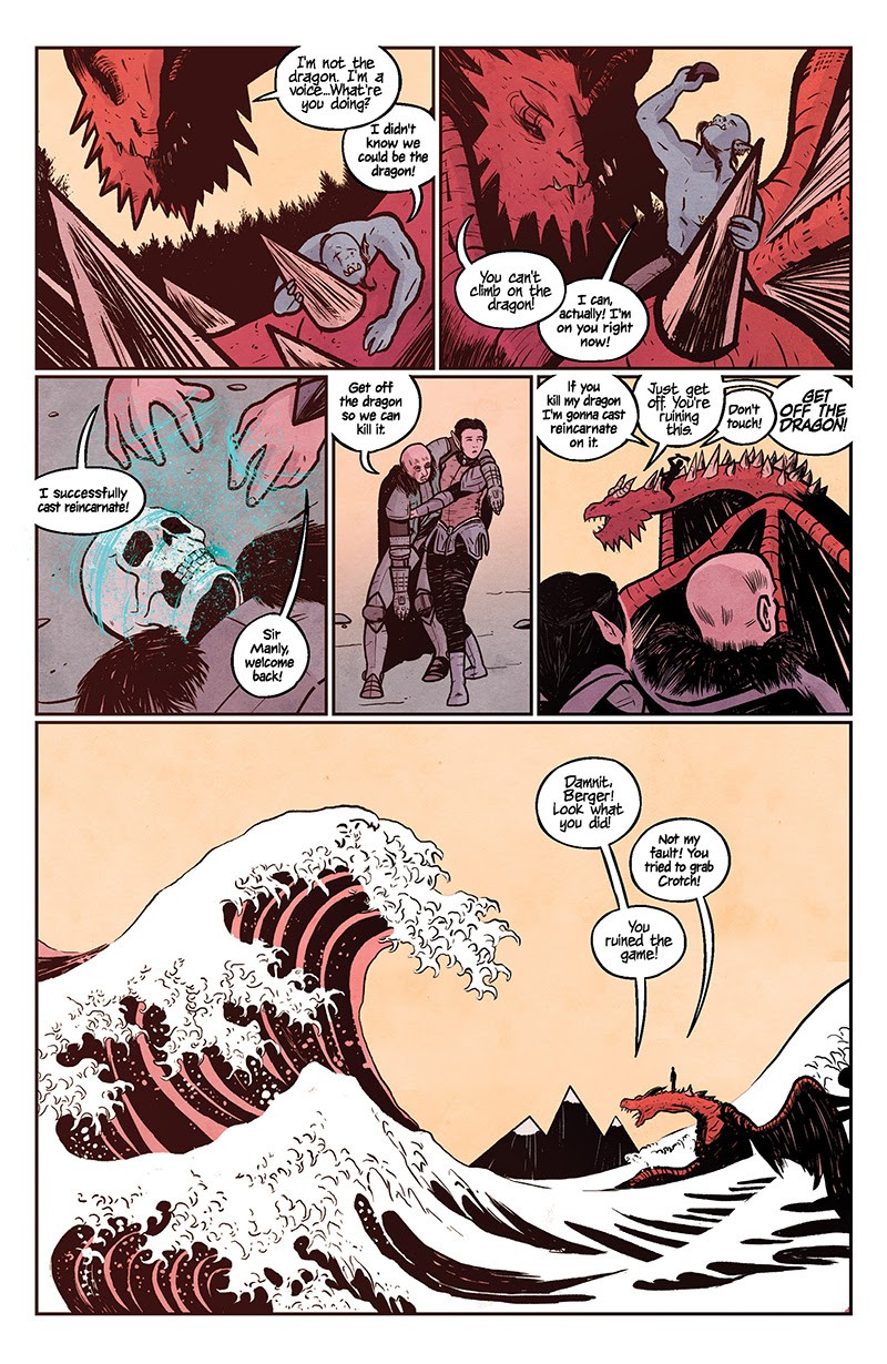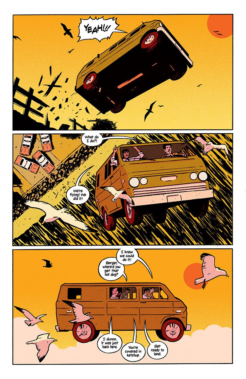 Before we get to talking a little about the story, when you open the trade and see the comic’s credits you’ll notice that they’re done in alphabetical order; art and design by Tyler Boss, Flatting by Clare Dezutti, Lettering by Thomas Mauer, Wallpaper by Courtney Menard and written by Matthew Rosenberg. Rosenberg was a guest on Graphic Policy Radio last year where he said that he felt it important that each artist who contributes to a comic is recognized (I could be wrong in the exact wording, but I believe the essence of the quote is there), and it was on that episode of the radio show that I first heard the term “flatter.” I hadn’t really come across it before, and consequently had no knowledge of what a flatter did. Thankfully, the ever reliable Wikipedia was there to help;